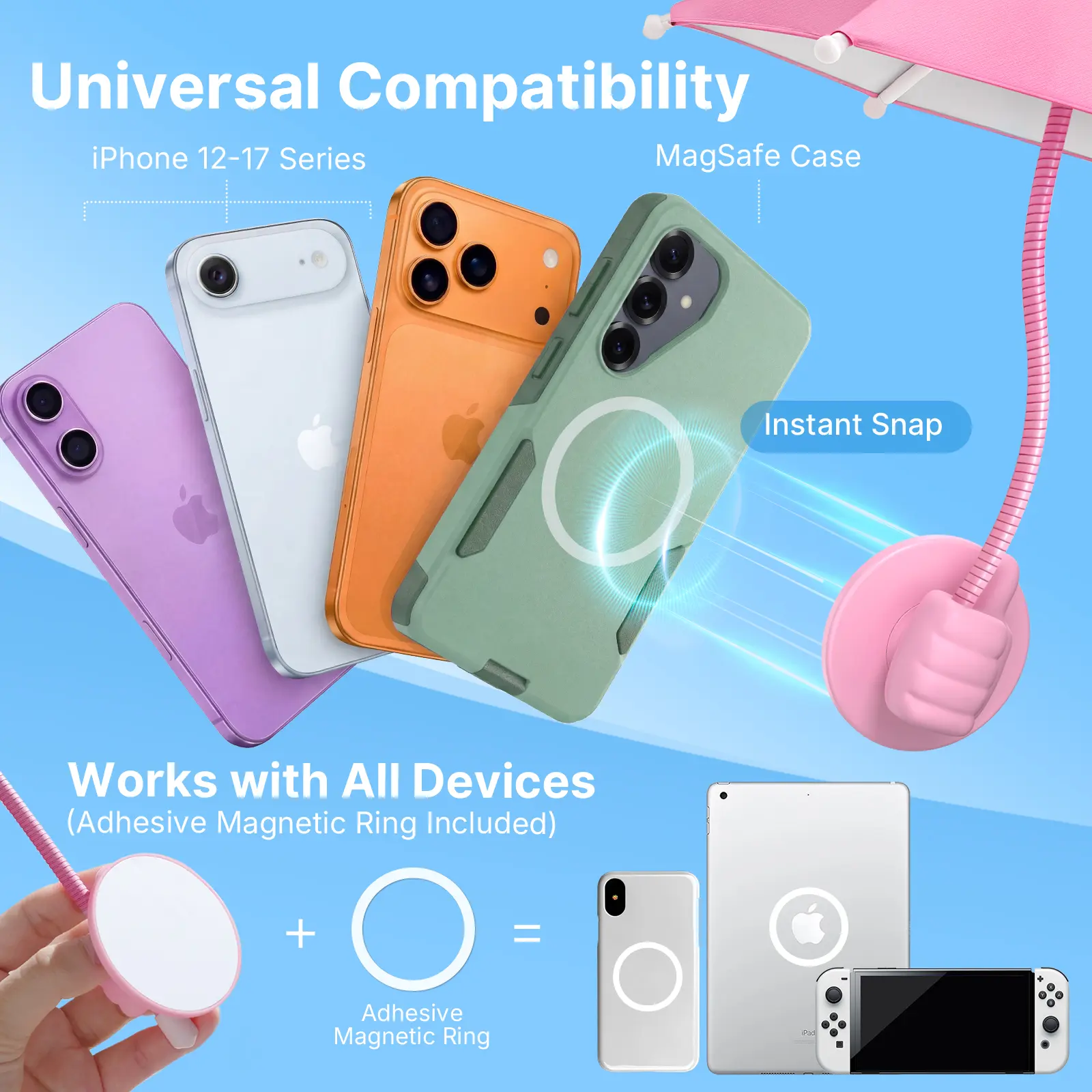 Phone Umbrella for Sun Shade Magnetic: Universal Thumbs Up Cell Phone Umbrella for iPhone Beach Outdoor Pool Travel Sunshade UV Protection Adjustable Funny Gadgets for Women Teens Girls Boys Men Easter Gifts Sun Umbrella Holder