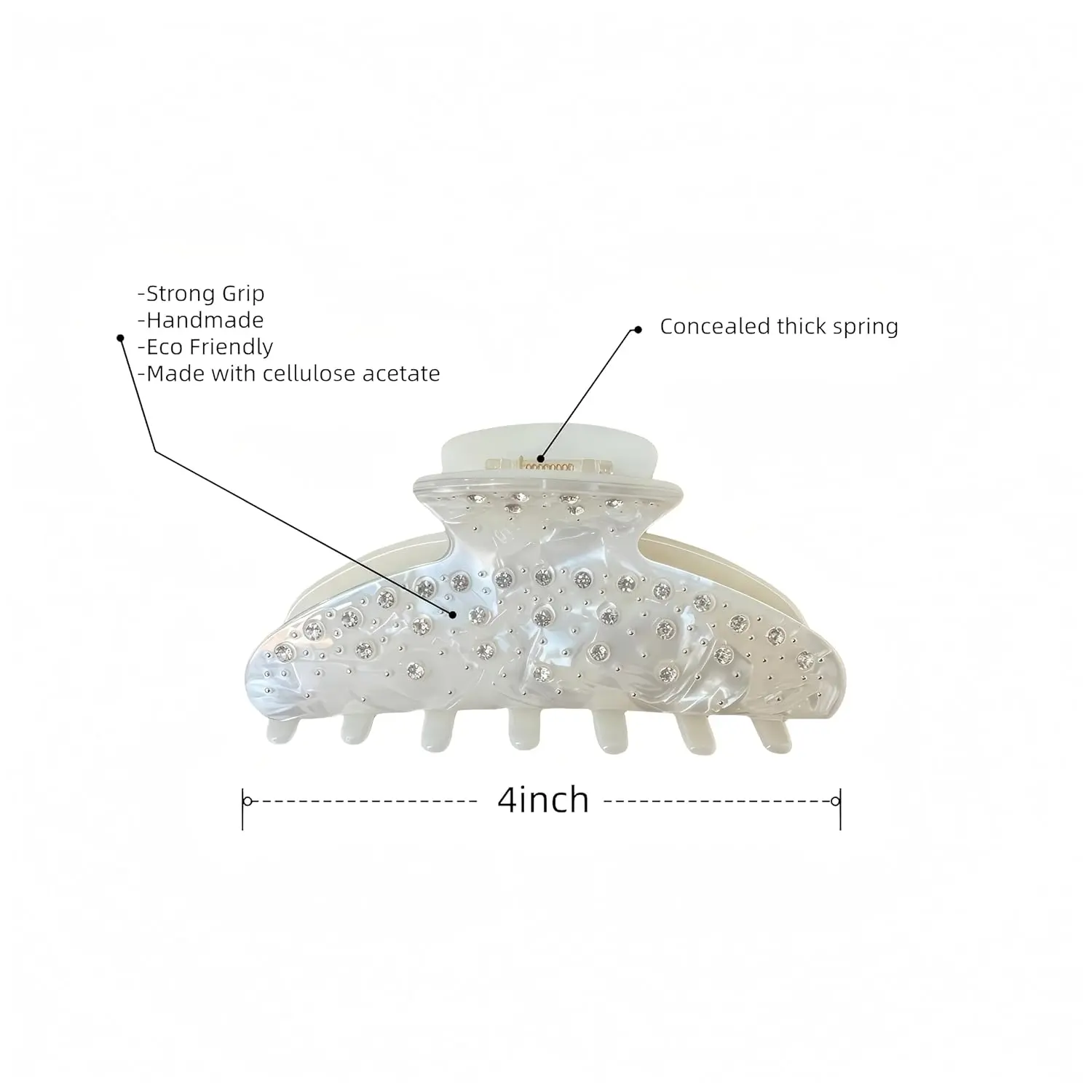 OideGuiing Durable Acetate Hair Clips - 4-Inch Shiny White Claw Clips for Fine and Thick Hair (Shiny White)
