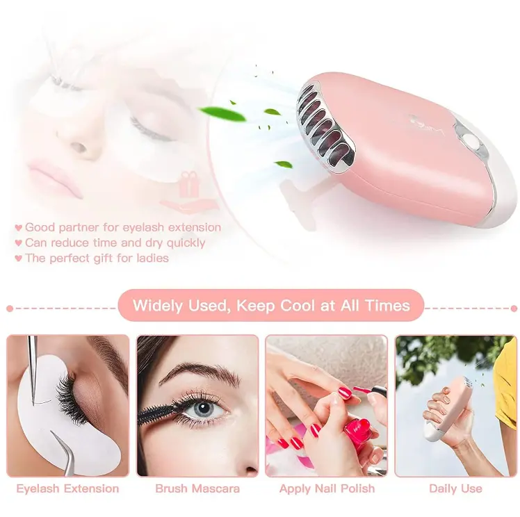 ·【USB Portable Fan】Our lash fan dryer for eyelash extensions built in sponge that absorbs cold water that allows the fan to generate cool air. equipped with the USB charging cable,support USB rechargeable,small size,light weight,easy to carry. In addition, it can make eyelash grafting quick drying and shaping, Perfect tool for eyelash extension.