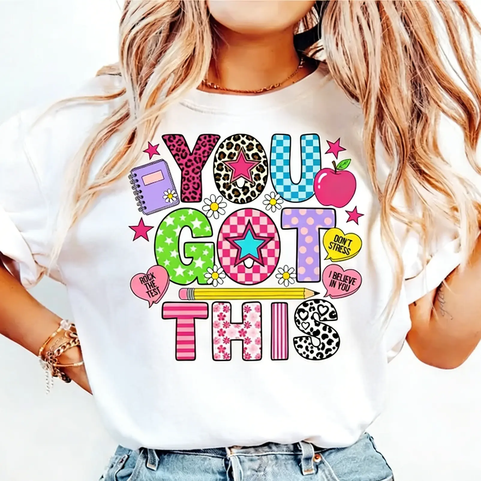 5. You Got This Motivational Teacher T-Shirt with Colorful School Icons, Back to School Positivity Tee for Women, Classroom Encouragement Shirt
