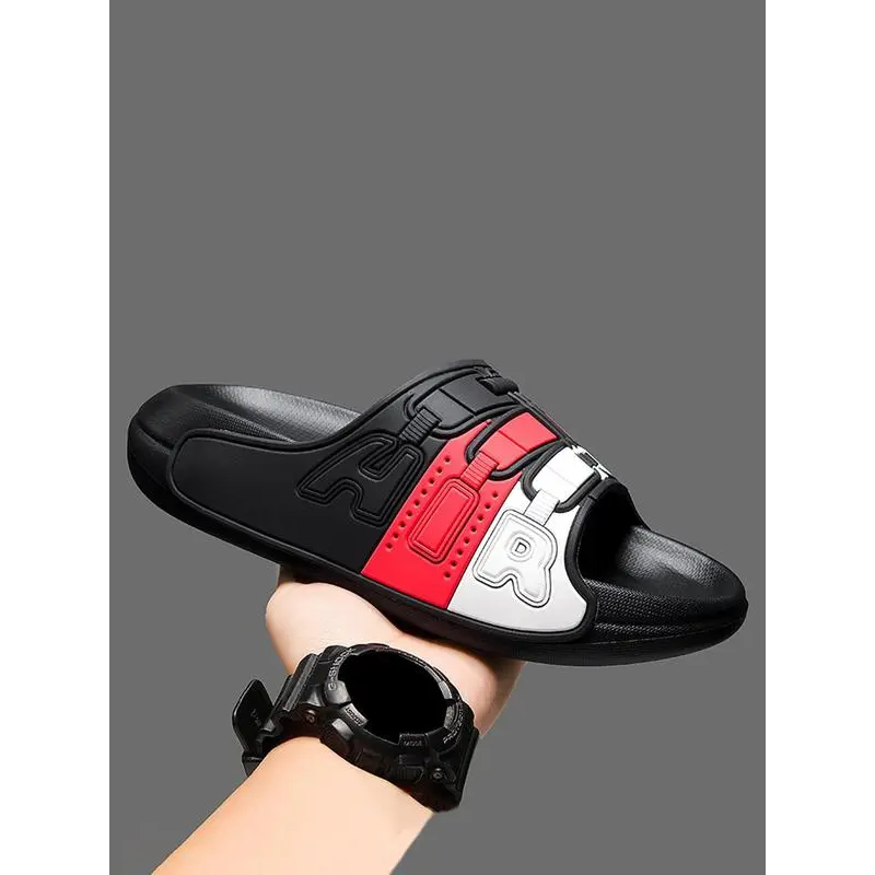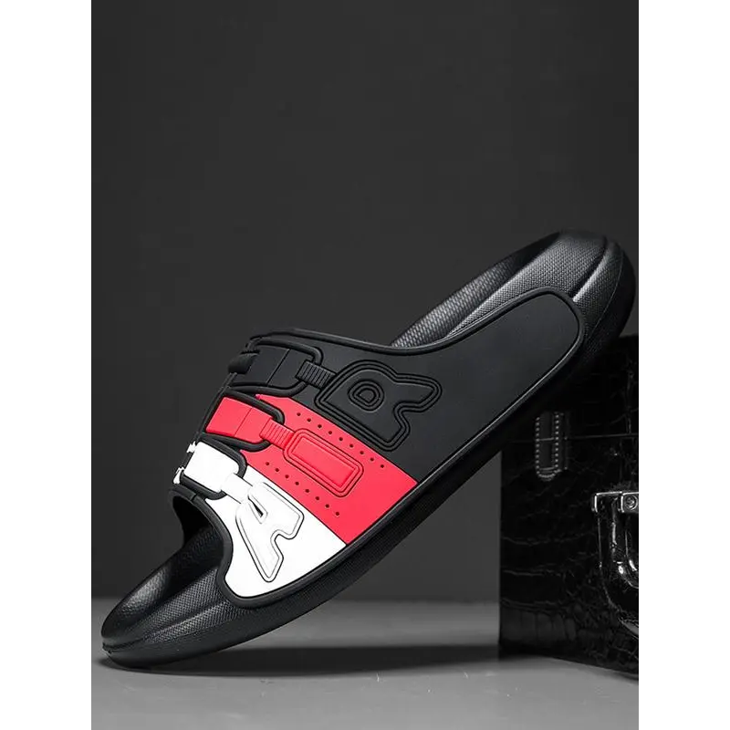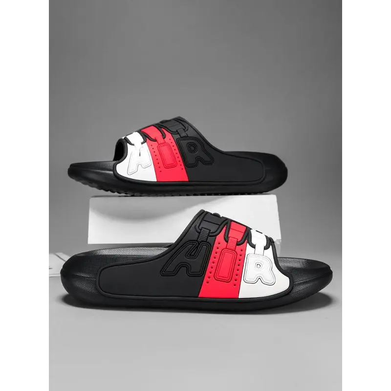 Colorblock Design : Featuring a bold colorblock pattern, these slides deliver a striking appearance, making them a notable choice for fashion-forward individuals.