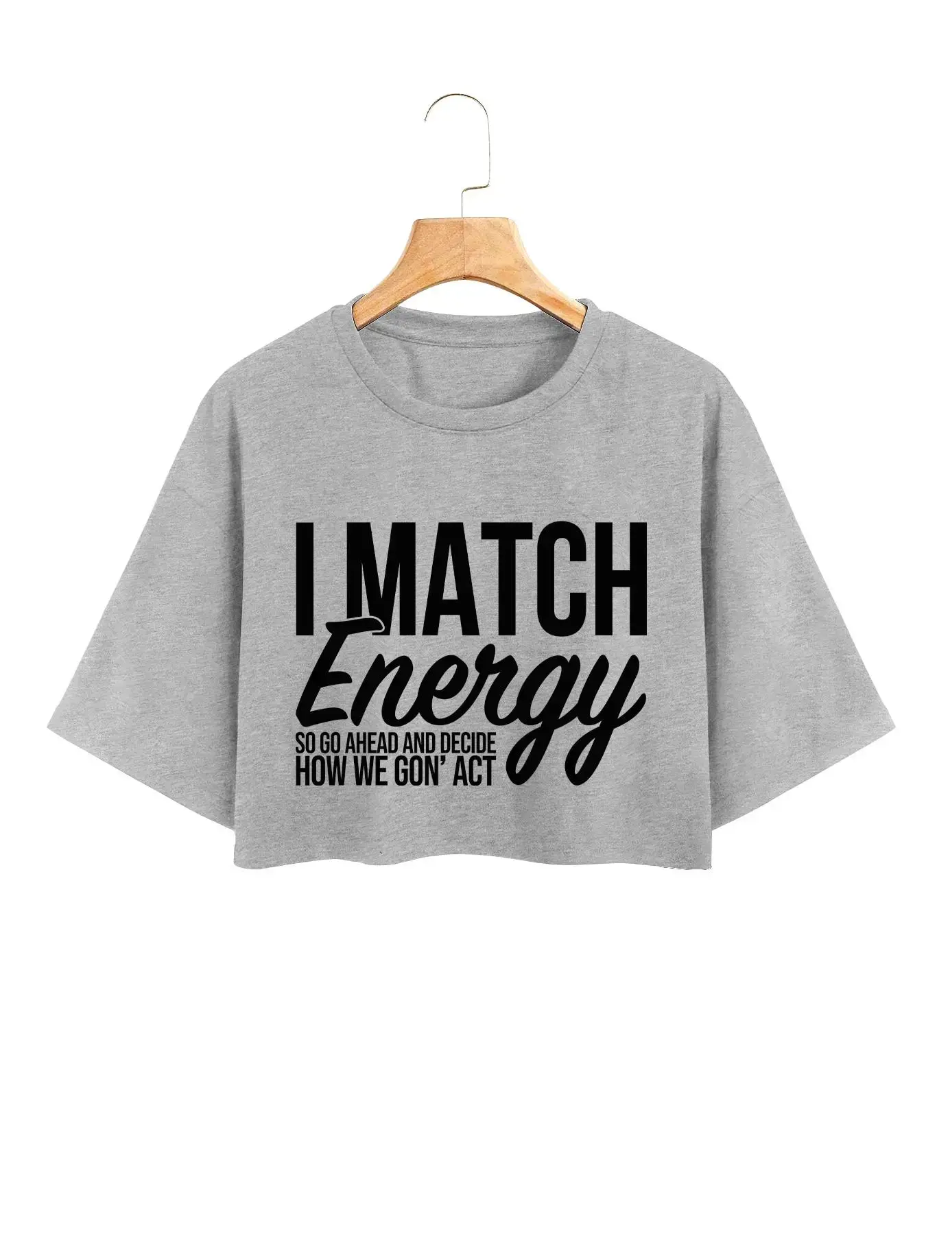 Women's Spring Letter Print Round Neck Crop Tee, Casual Short Sleeve Crew Neck T-shirt for Summer, Streetwear Women's Top for Daily Wear, Casual Fashionable Top