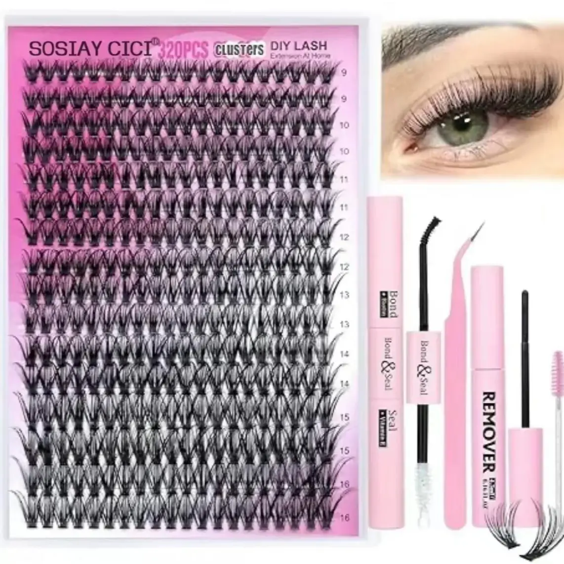 Spring Glow Up Lash Kit, SOSIAY CICI 320PCS 40D Lash Clusters, DIY Eyelash Extension Set with Bond & Seal, Perfect Spring Makeup Gift