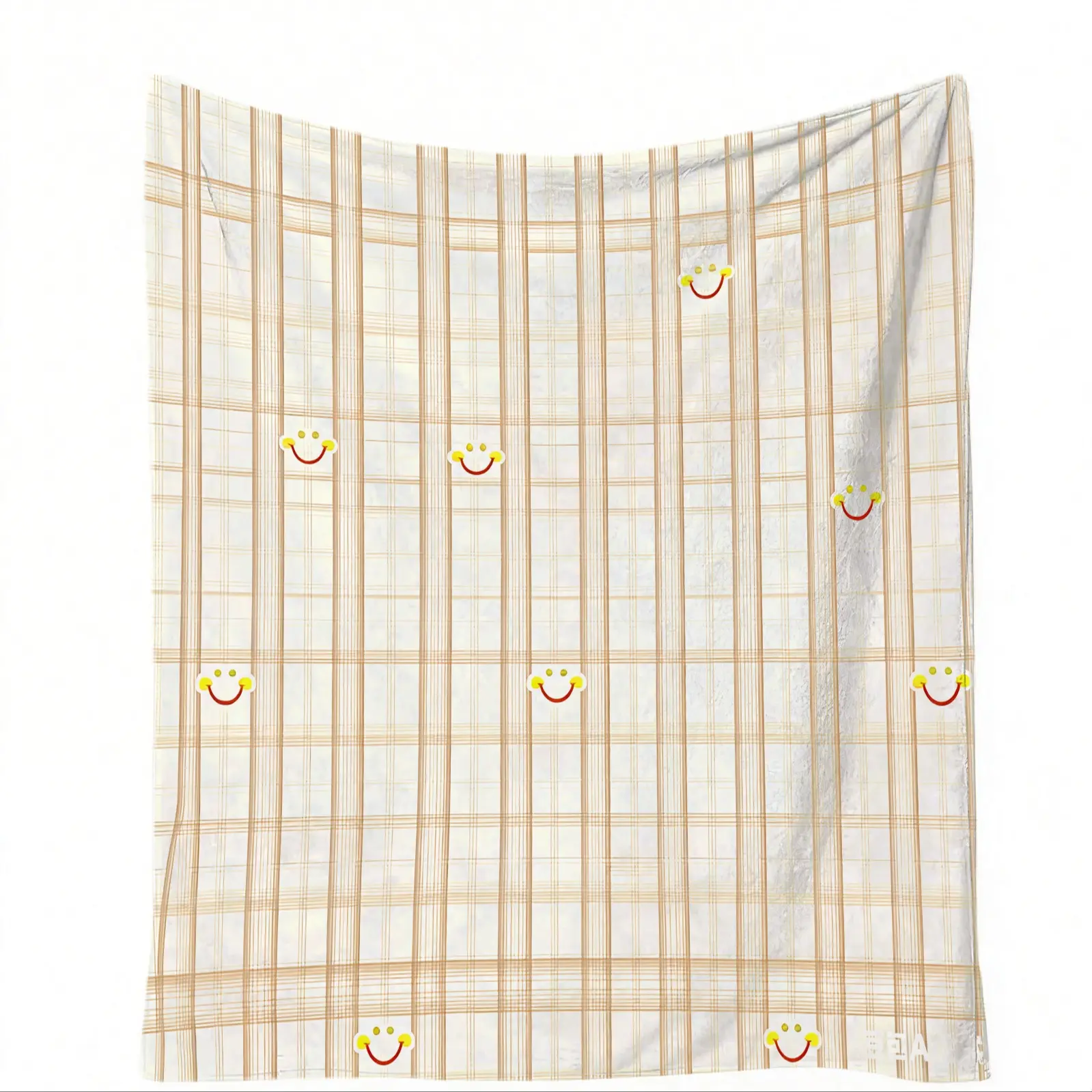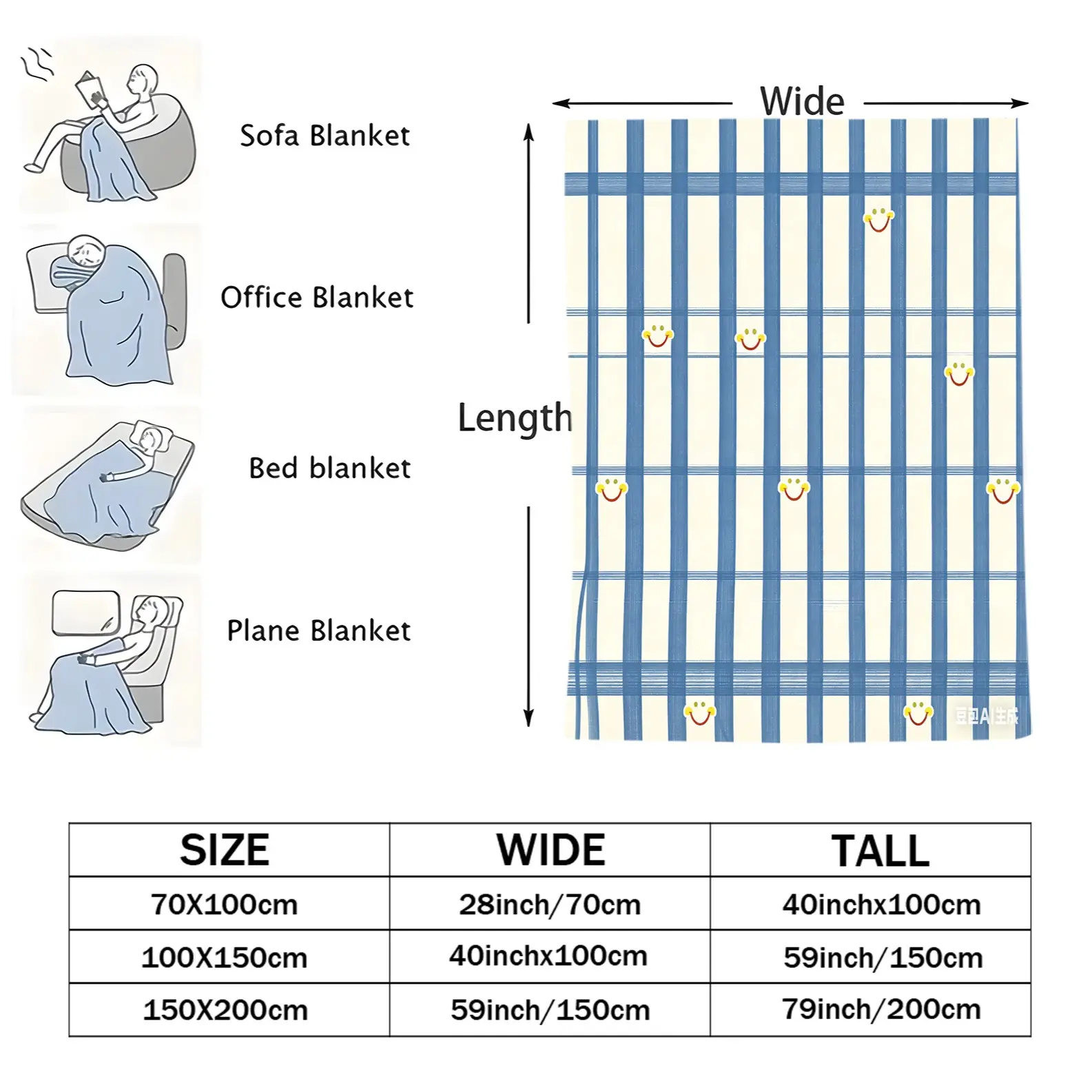 Smiley Grid Pattern Plush Blanket, Soft Warm Lightweight, Ideal for Bed Sofa Car Room Decor, Perfect Moving Holiday Gift