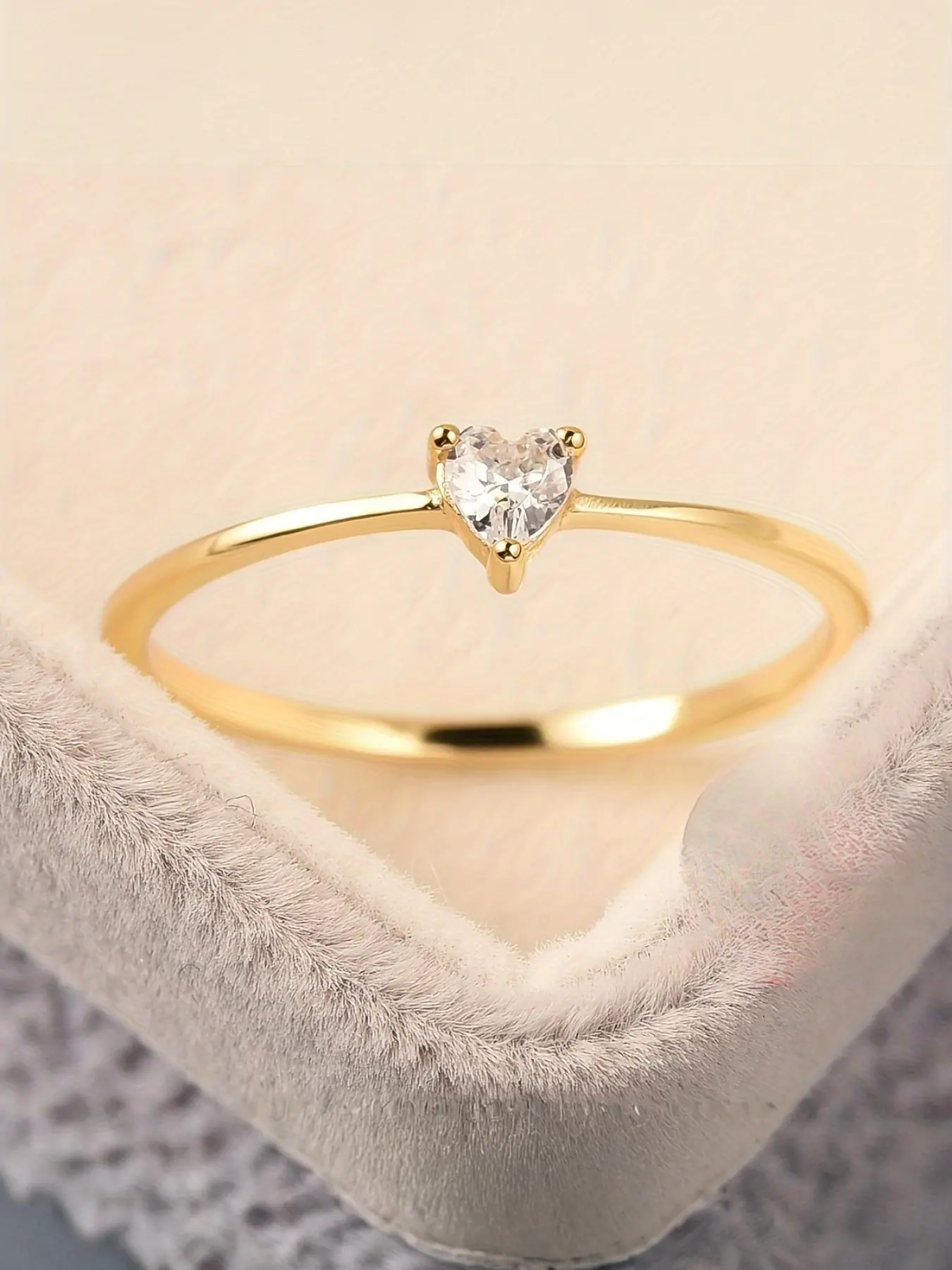 Cute Heart Shape Ring, 18K Gold Plated Jewelry, Perfect Gift for Family, Ideal Return-to-School Present, Women's Casual Style, All Seasons