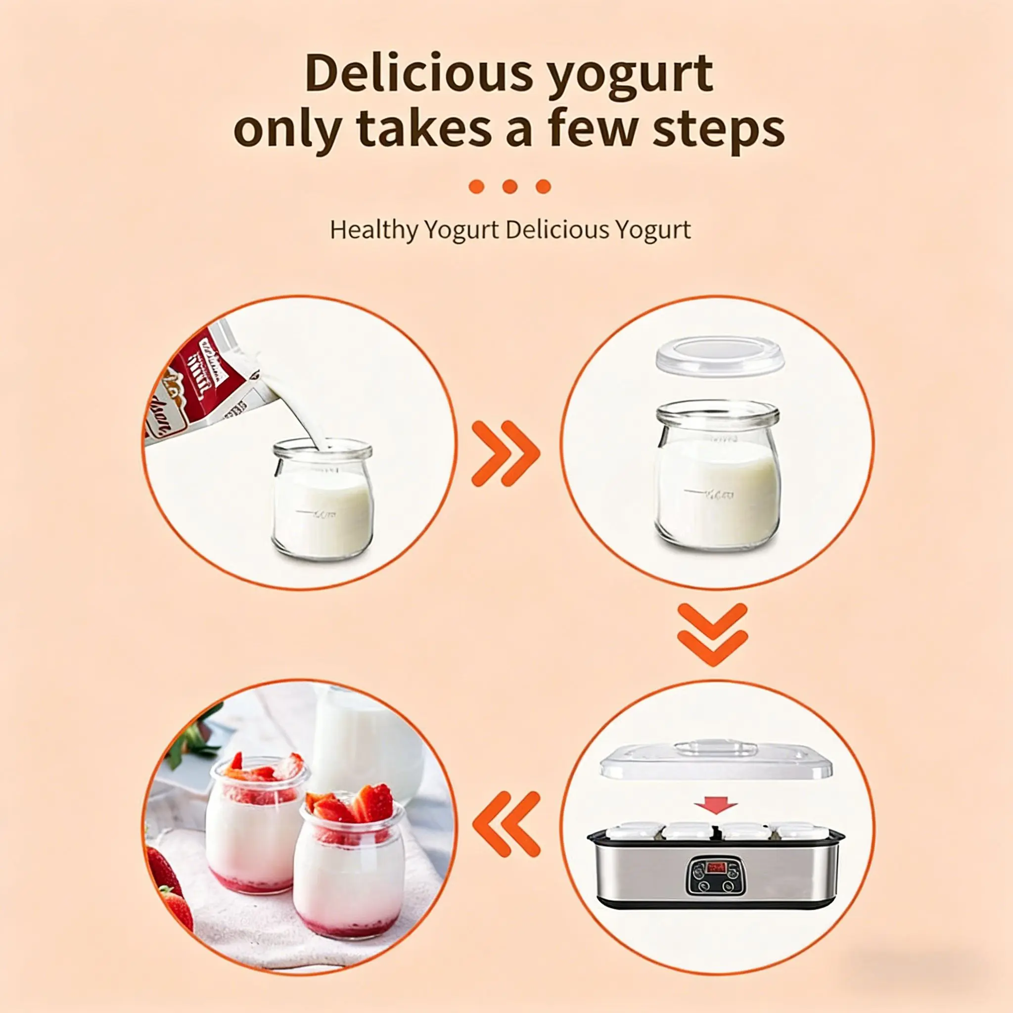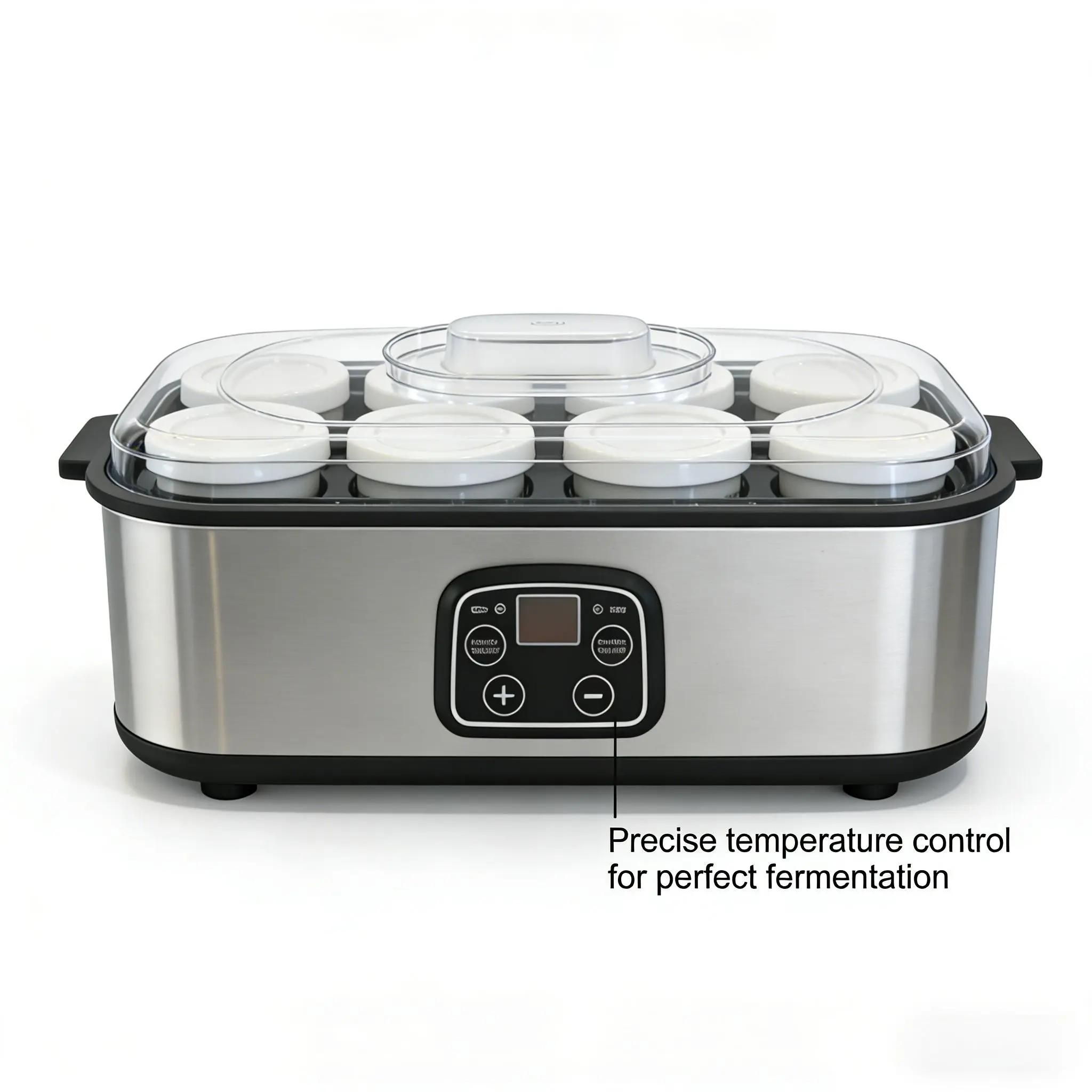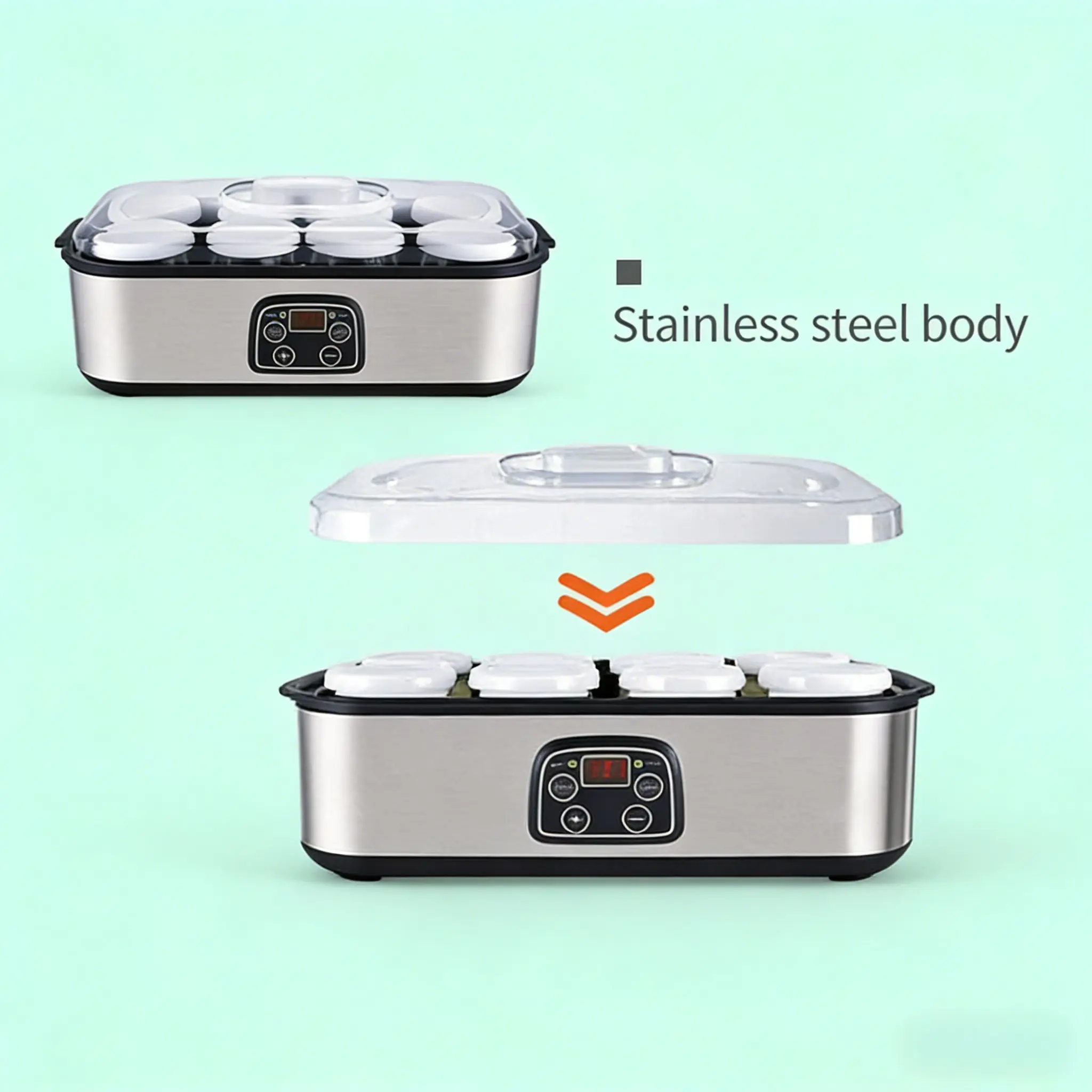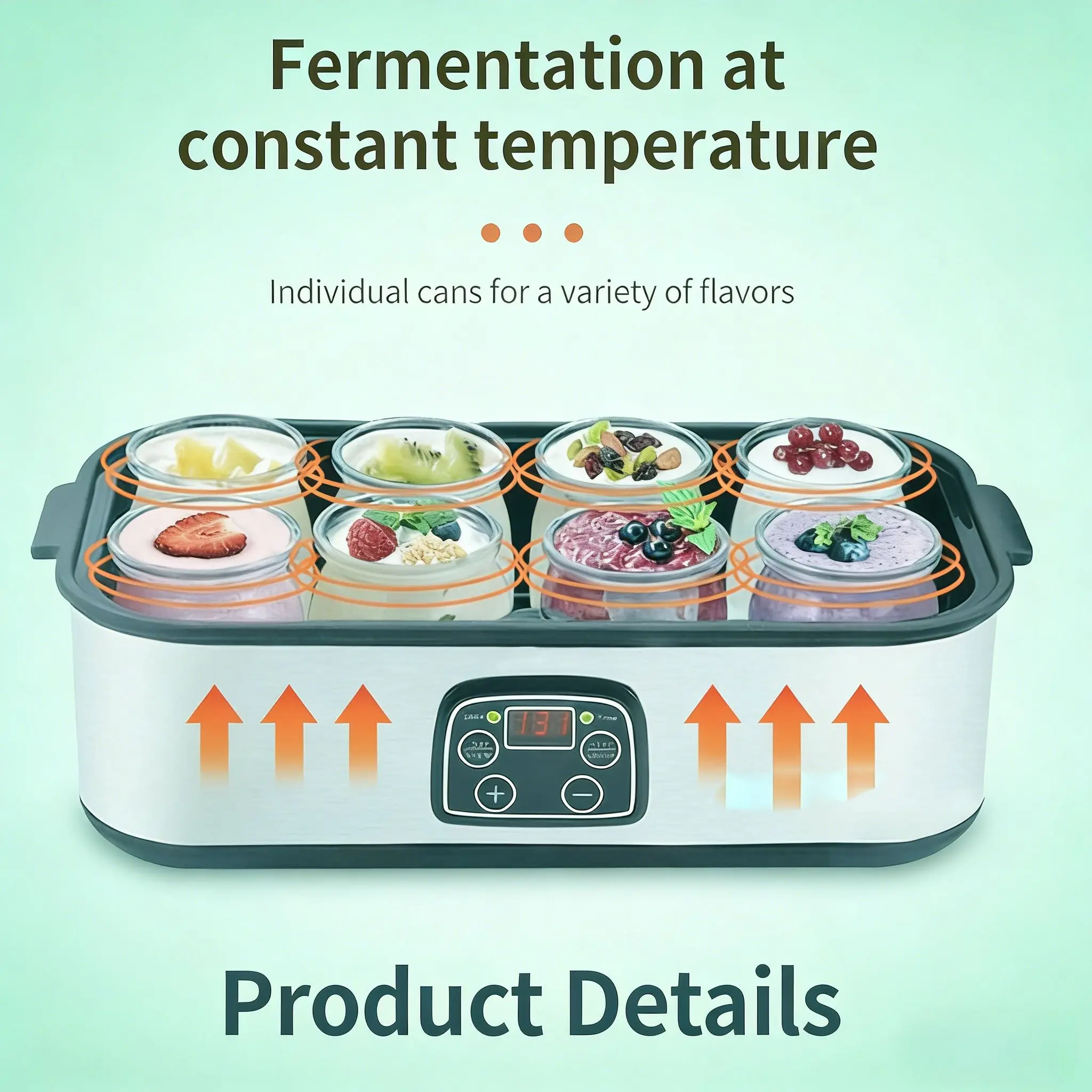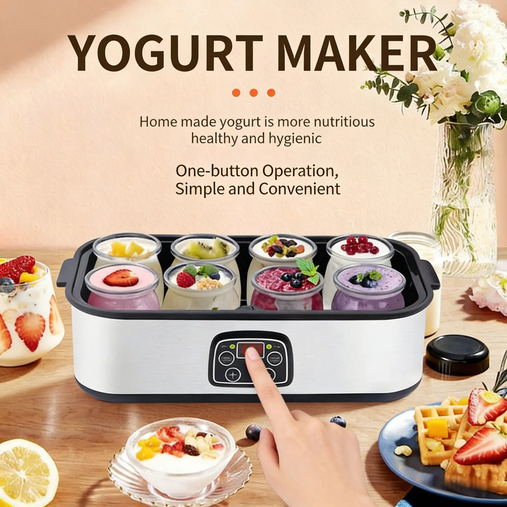 Electric Yogurt Maker Machine, 8 Jars Stainless Steel Yogurt Fermenter with 5 FREE Gifts: Bottle Opener, Egg Separator, Dish Sponge, Cleaning Cloth, Jam Spreader