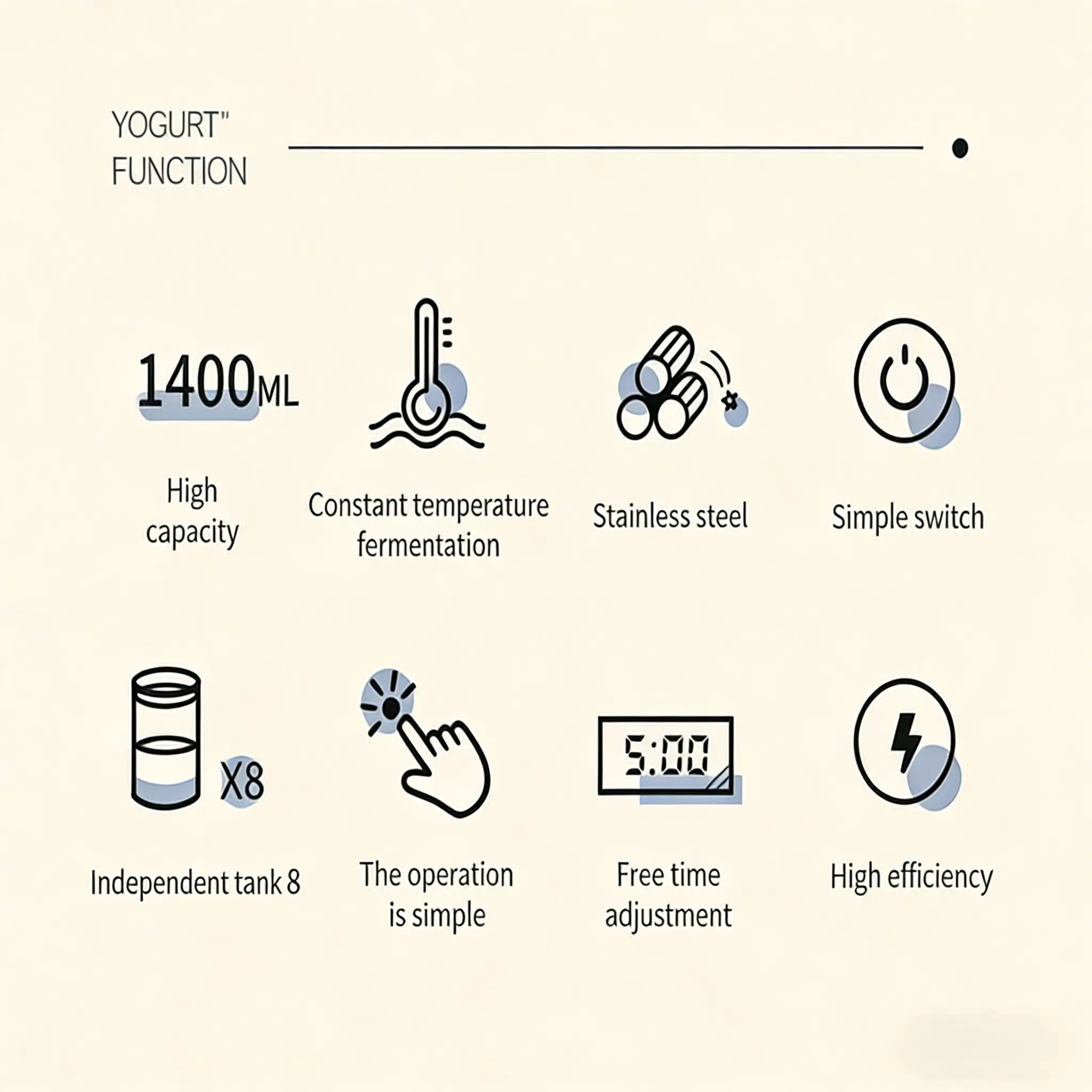 The precise constant temperature system ensures smooth, consistent probiotic yogurt every time, without added sugars or preservatives.