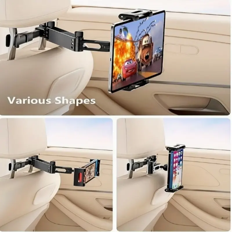 This car rear seat phone and tablet holder is a multifunctional car accessory specially designed for rear seat passengers to watch movies, work, and study. It features four core advantages: rear headrest installation, folding and rotating, universal compatibility for phones and tablets, and stability and anti-shake performance. It fits most car seat headrests on the market and is compatible with smart devices of different sizes, such as phones and iPads.