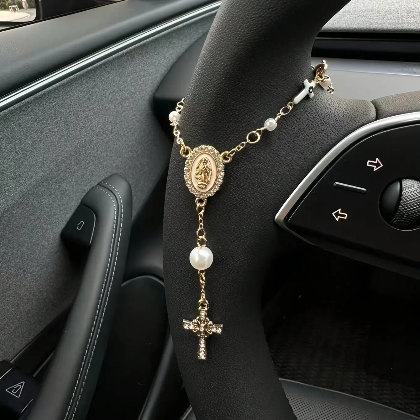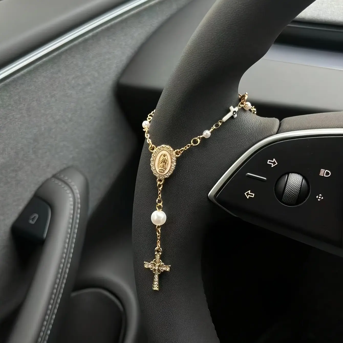 Meaningful cross design-This steering wheel decoration features a minimalist cross with pearls, which symbolizes faith, love and personality. Suitable for women's daily driving.