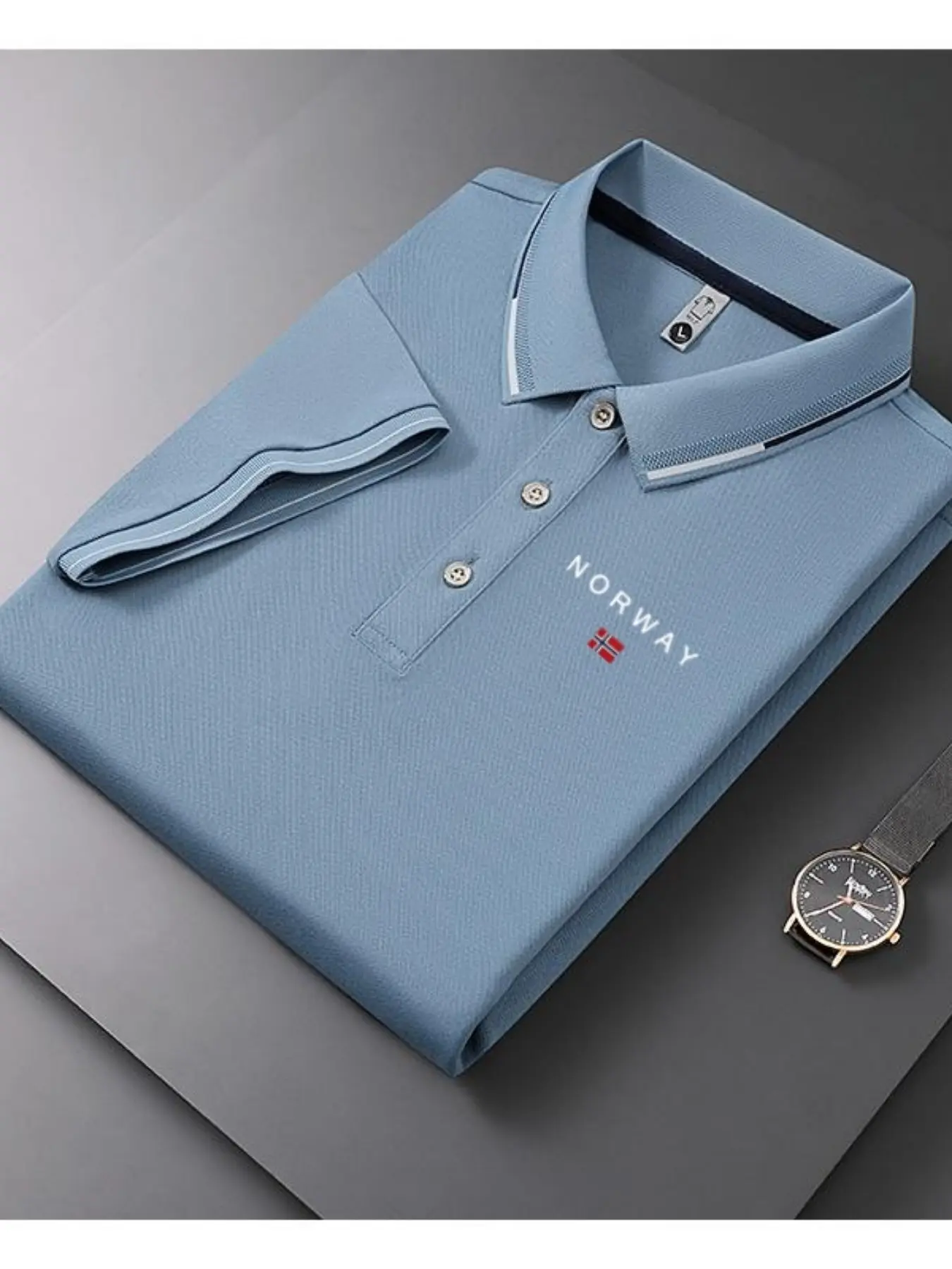 Men's Casual Summer Print T-Shirt, Iceland Flag Design, Geometric Pattern, Lightweight Breathable Polo Shirt, Short Sleeve Top