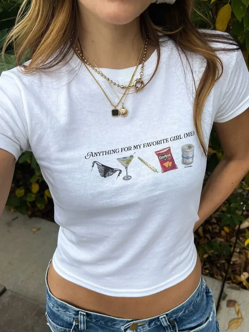 Baby Tee / Crop Top style: The design gently hugs the body, showcasing curves, and the perfect length to pair with low-waist pants or skirts for a flattering look.