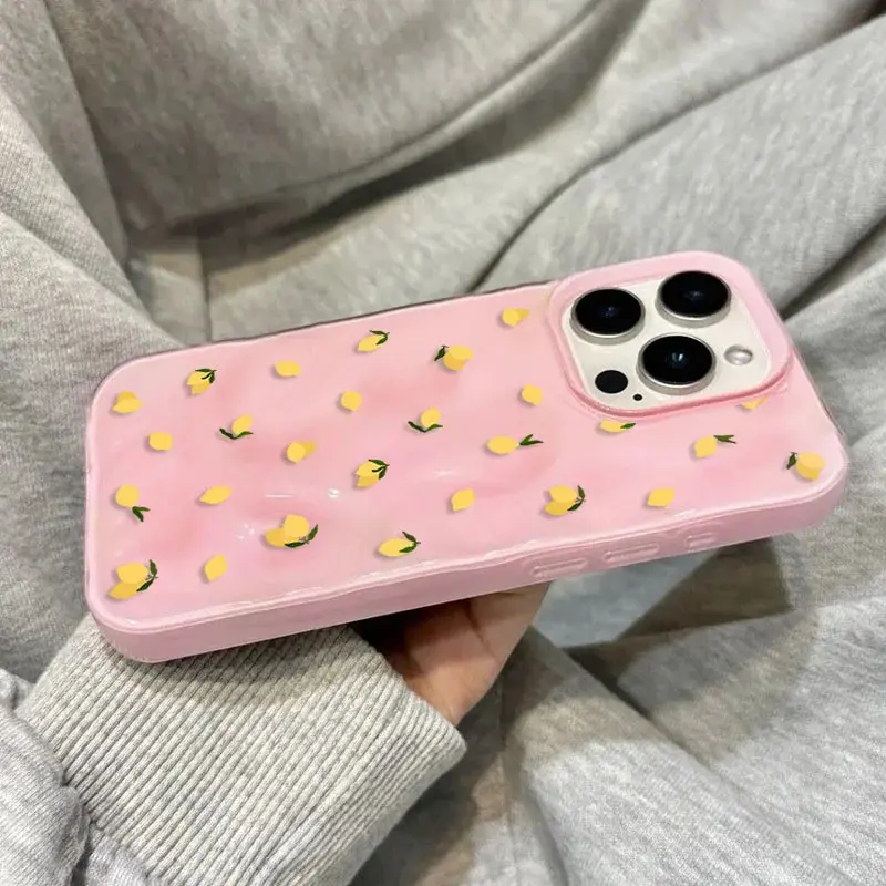 super cute phone case, it has two holes on the side so it’s perfect for looping a cute phone charm. the edges of the phone case are raised to protect the screen and overall seems like a good quality phone case