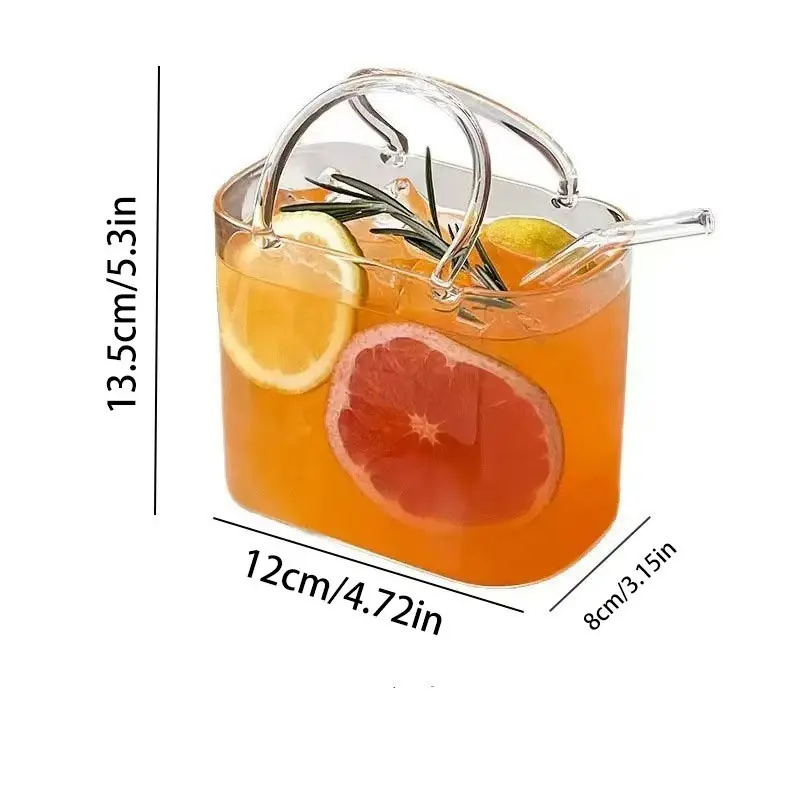 【Creative Design】: Featuring a unique handbag shape, this glass cup adds a touch of creativity to any setting.