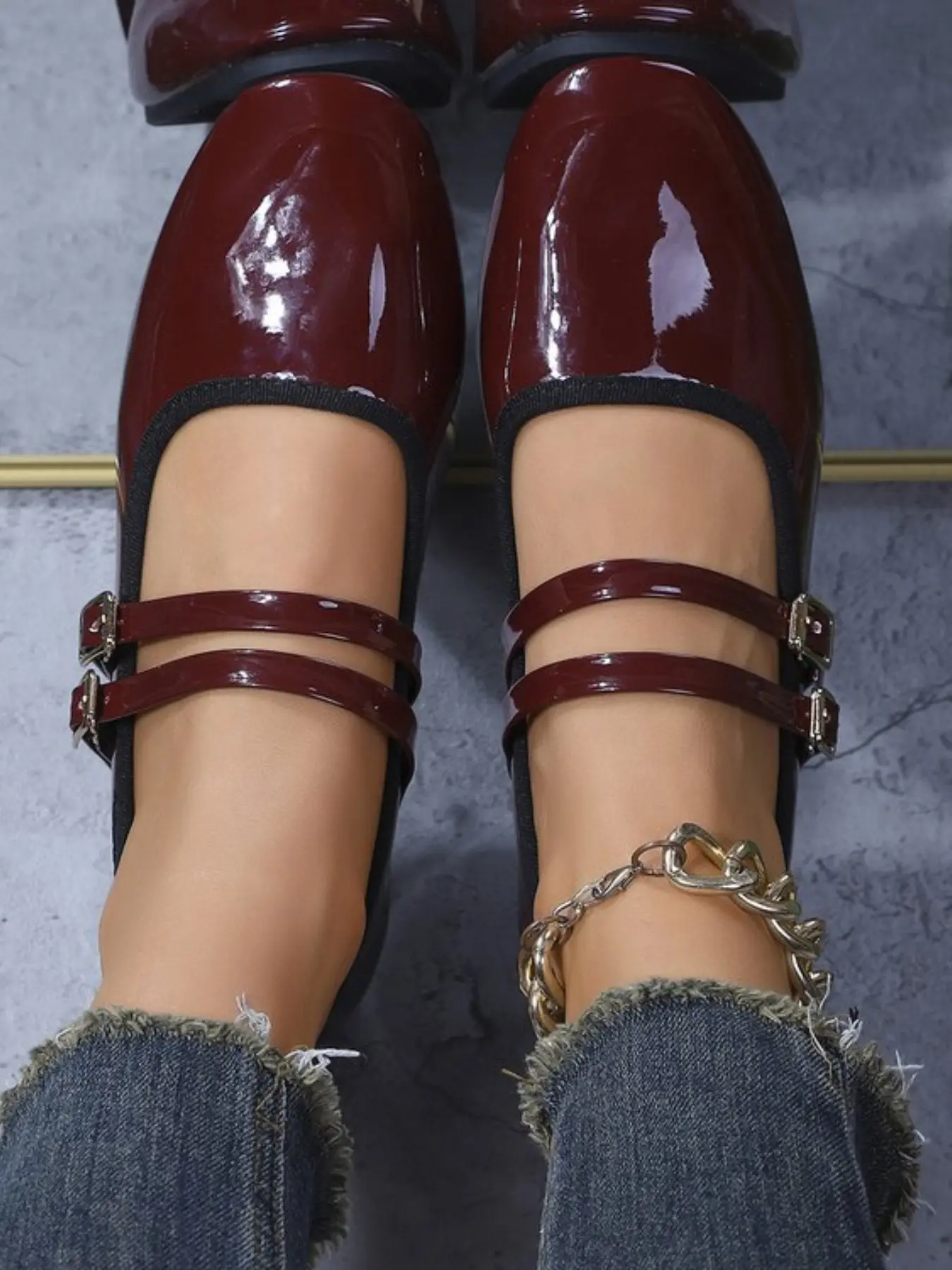 2026 New Women's Double Buckle Mary Jane Shoes, Square Toe Leather Soft Sole Ballet Flat, Casual for Work, Date, Daily Wear, College Style
