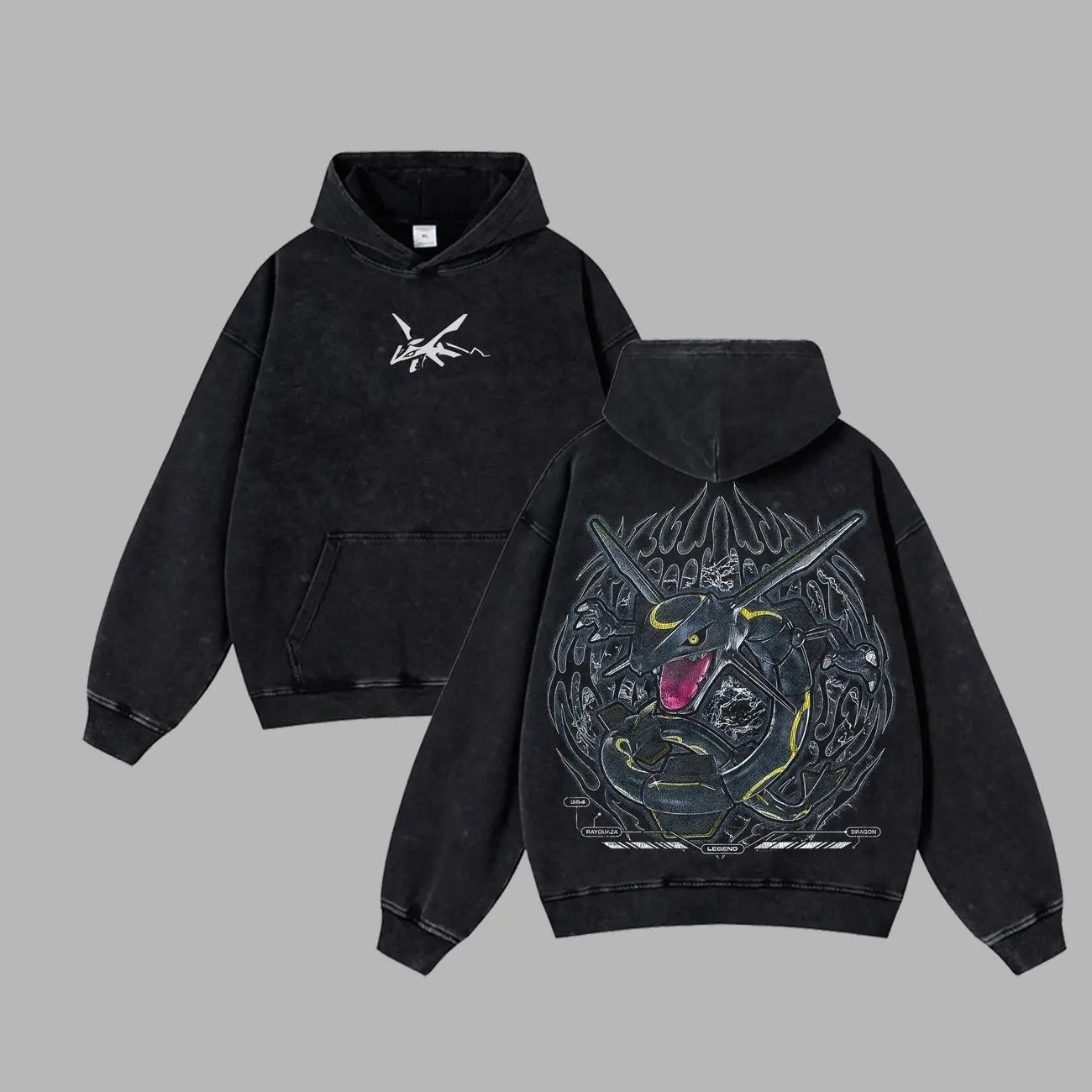 Shiny Rayquaza Retro Unisex Acid Washed T-Shirt, Hoodie, Pocket Monster Graphic Tee, Anime Streetwear Top, Black Bull Aesthetic Manga Merch, Gift for Anime Fans, Christmas Gift 8AZ