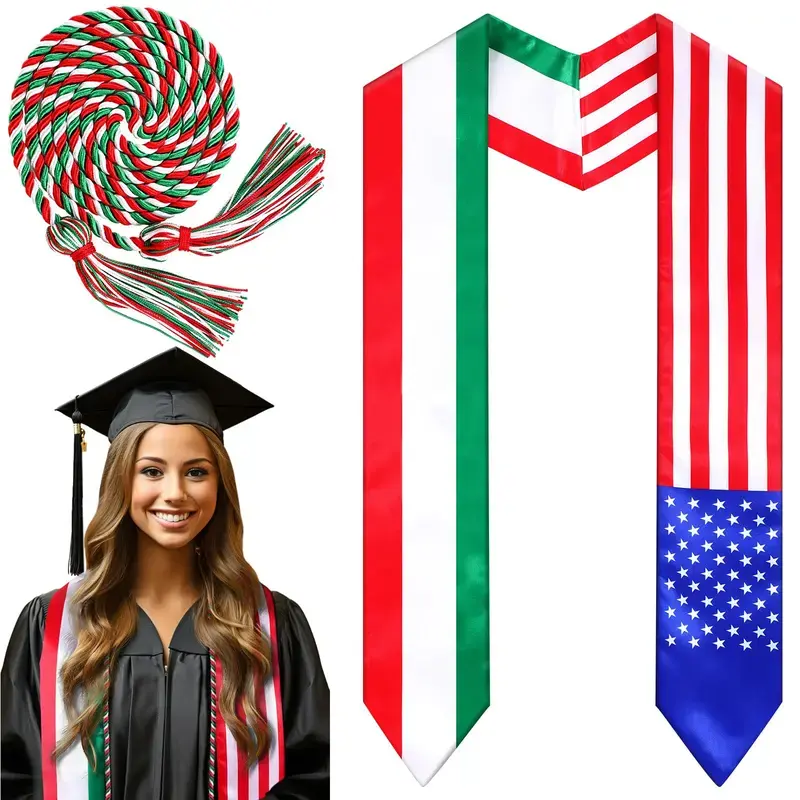 5. Class of 2026 Graduation Stole with Grad Cord First Generation Graduation Sash for International Students Senior Grad Gift Featuring Country Flag Design