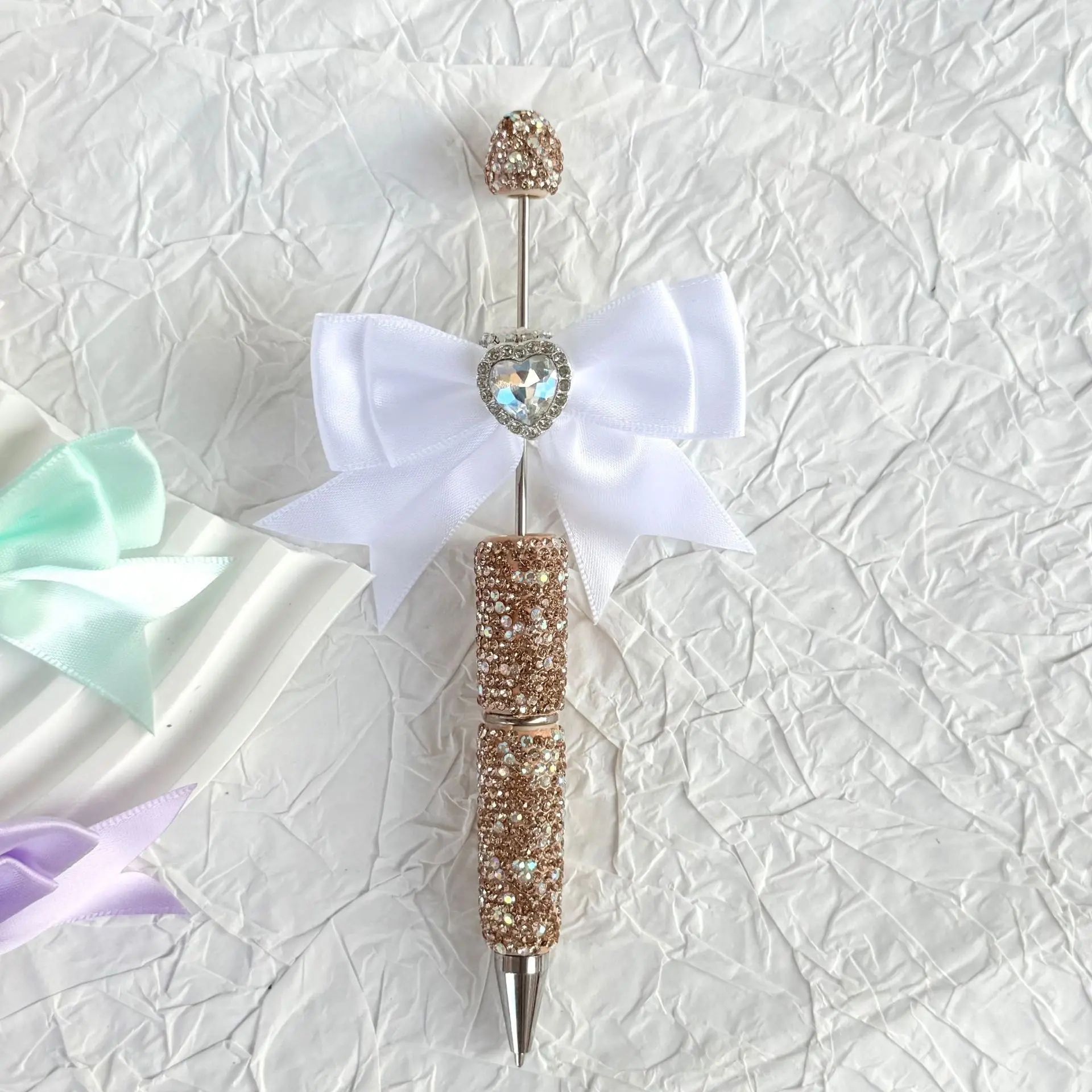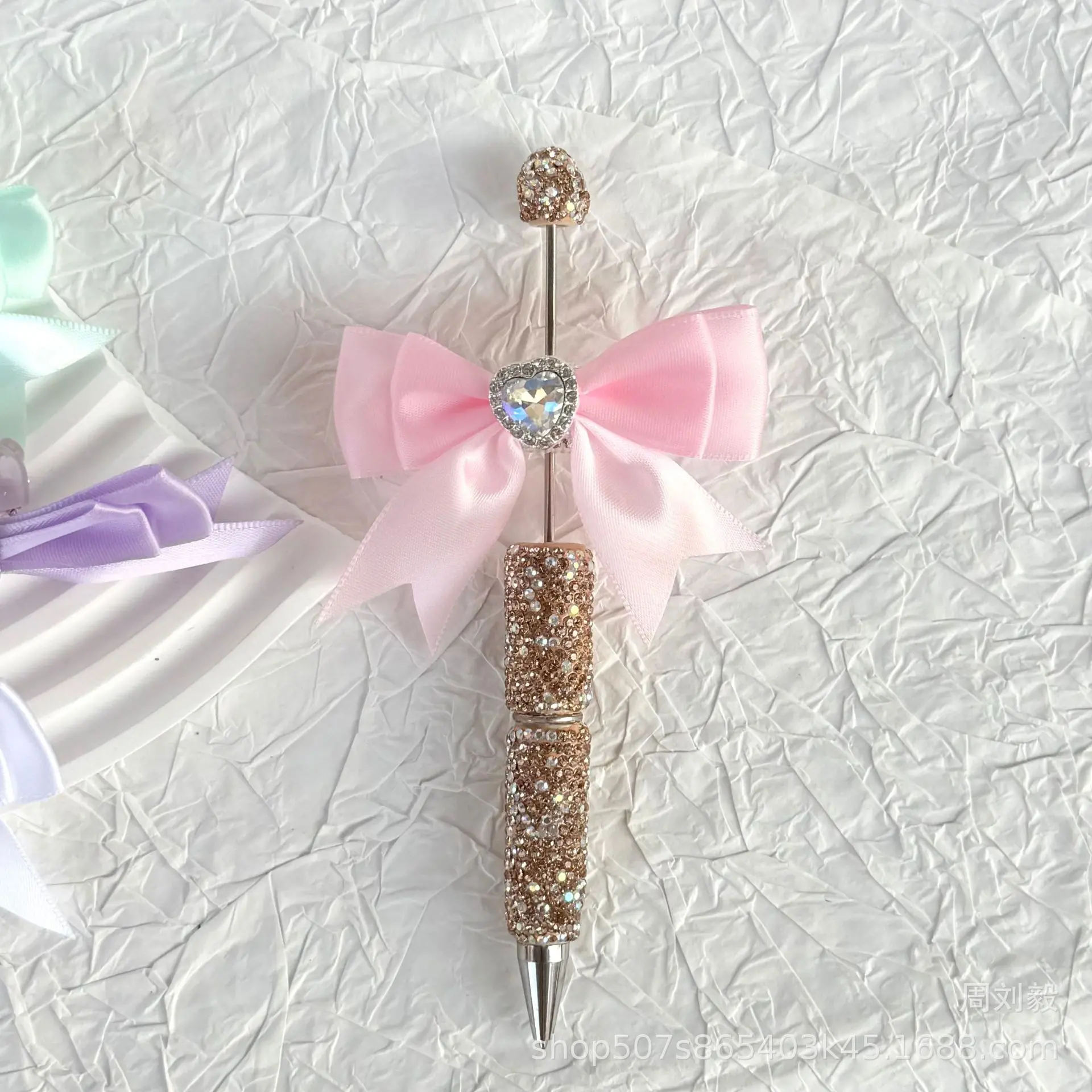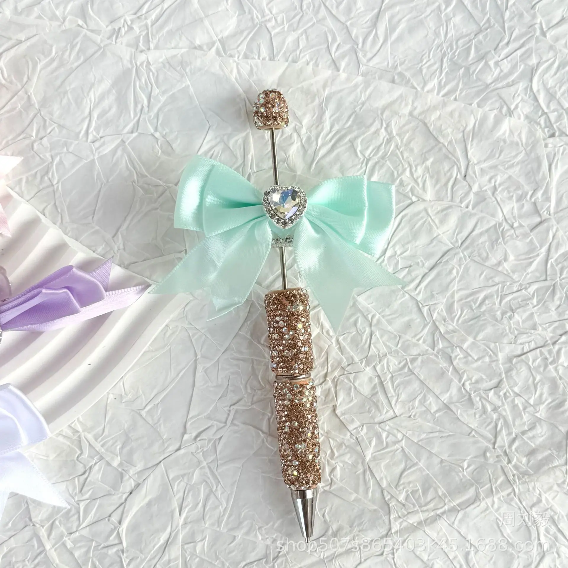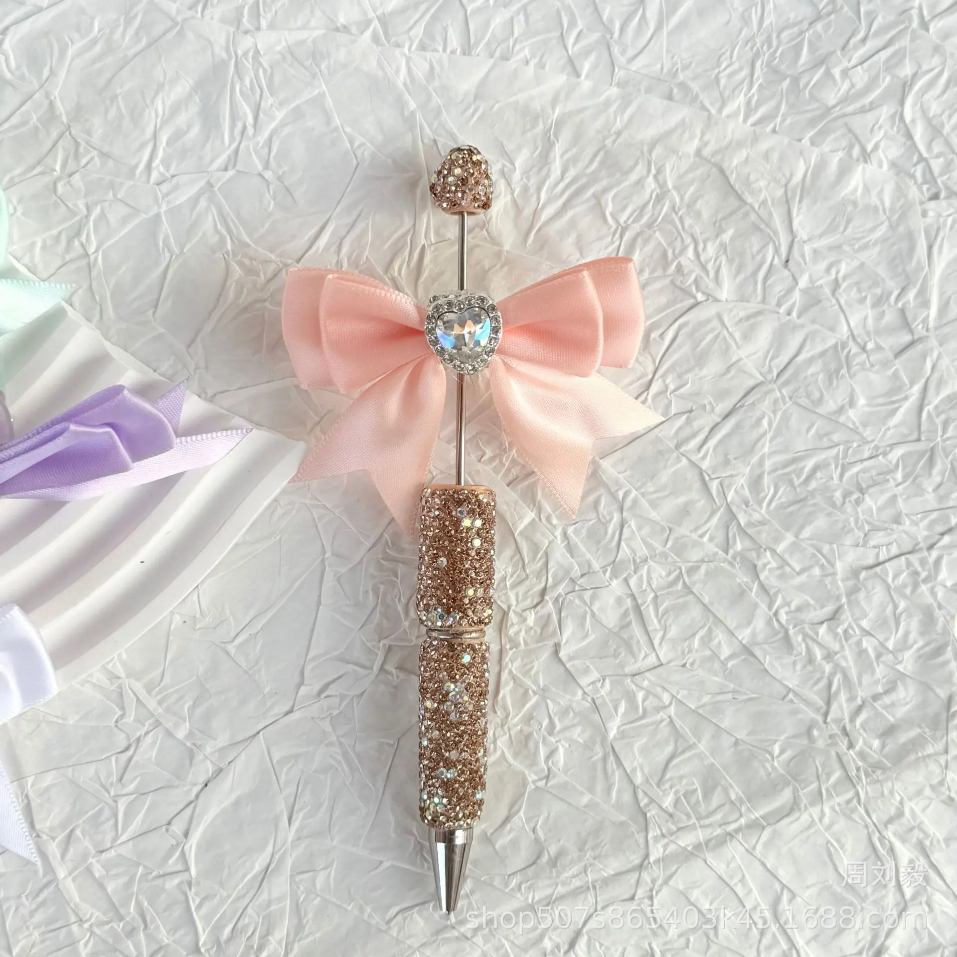 French-style candy-colored beaded bow accessory with rhinestones, satin double-layer bow accessory, beaded pen accessory, decorative piece