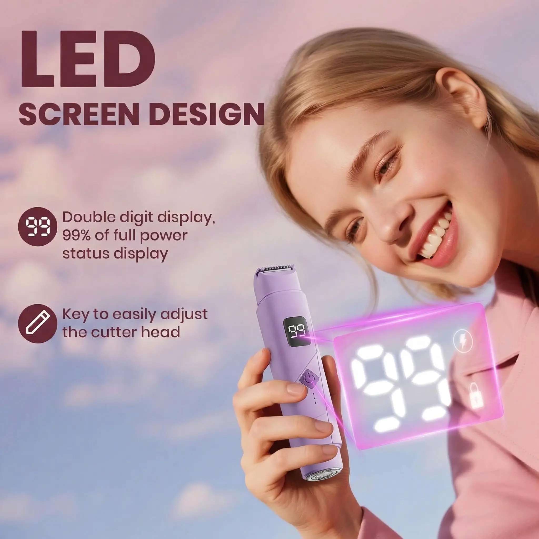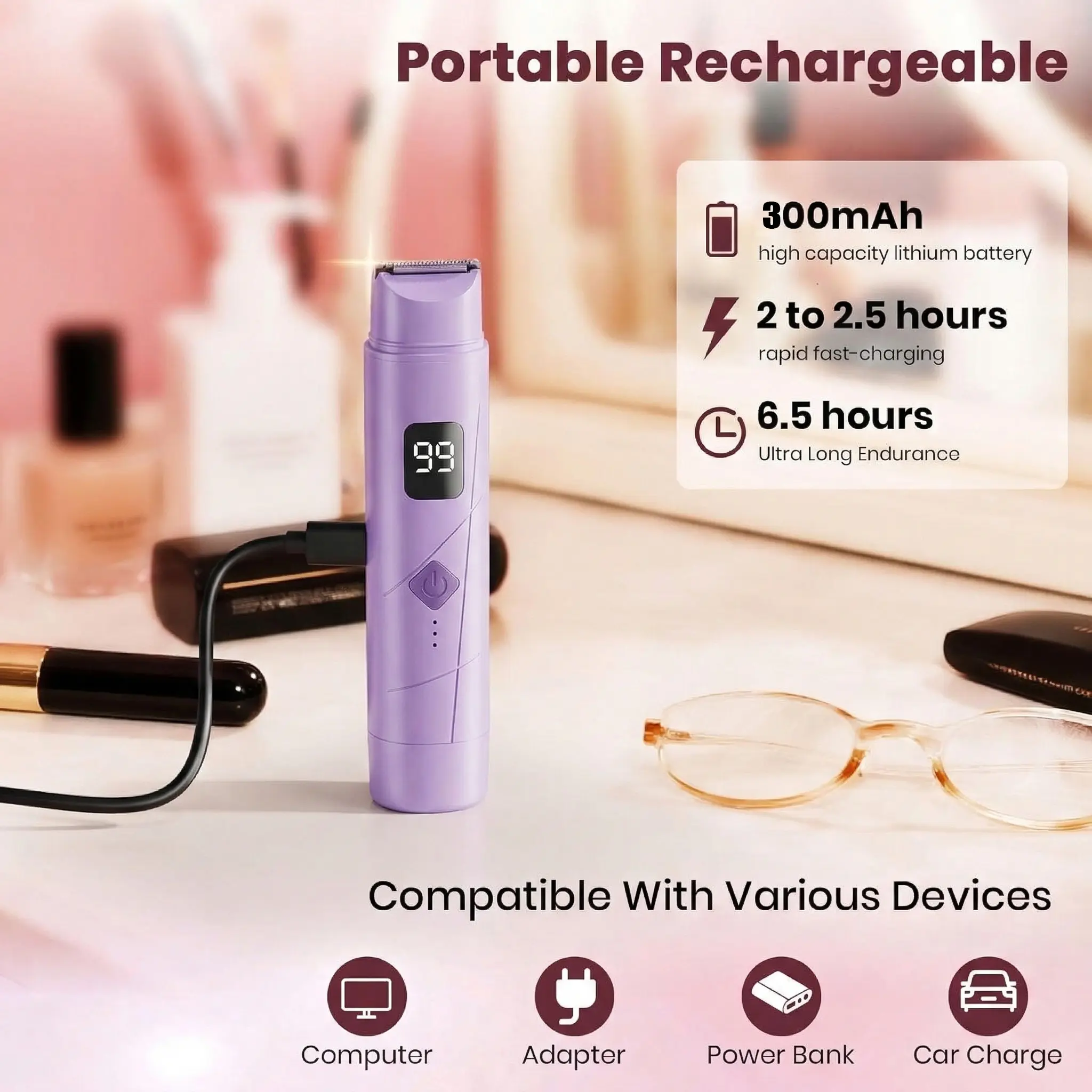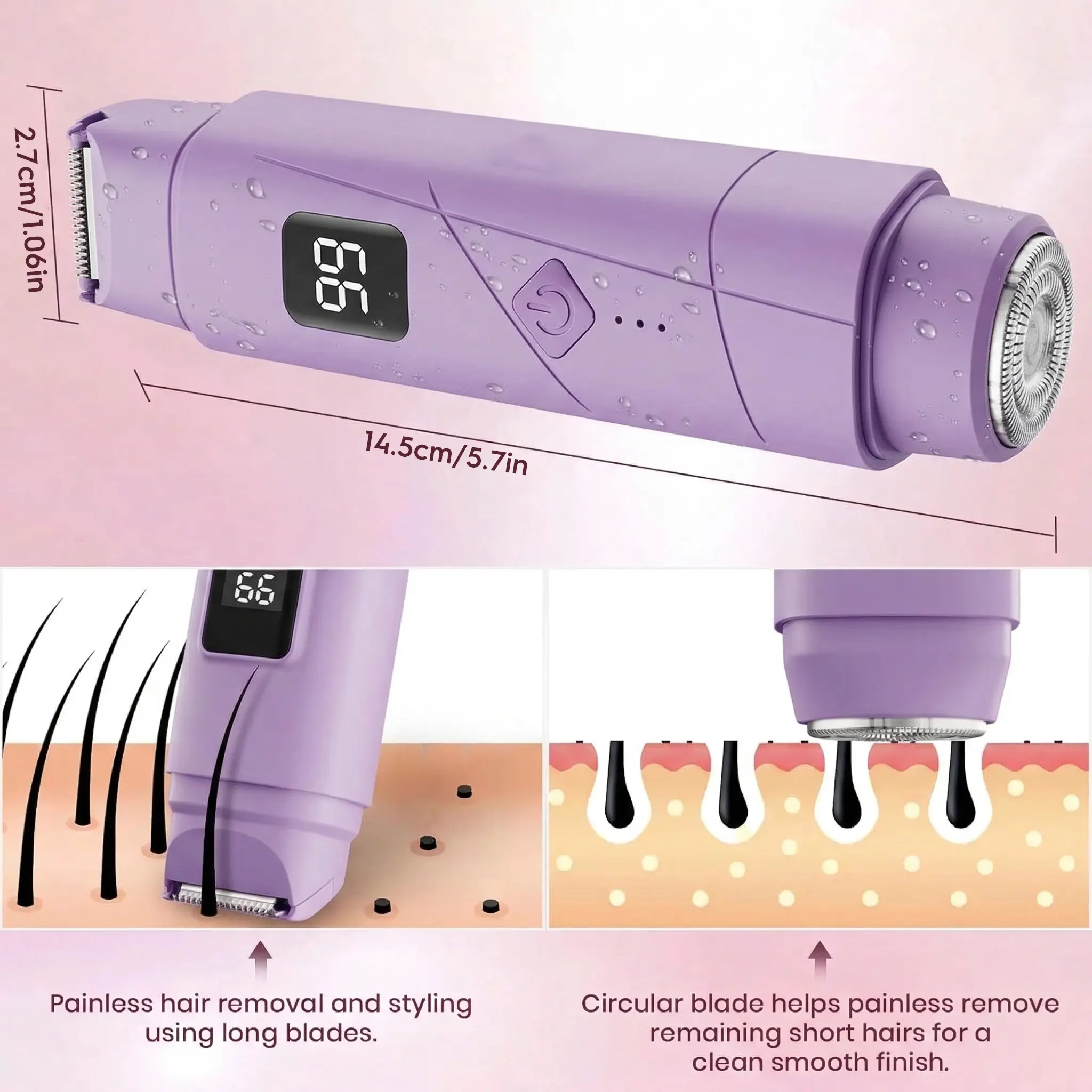 Rechargeable 2-in-1 Bikini Shaver with LED Display - Purple Color, USB Charging, 2 Attachments, 100% Satisfaction
