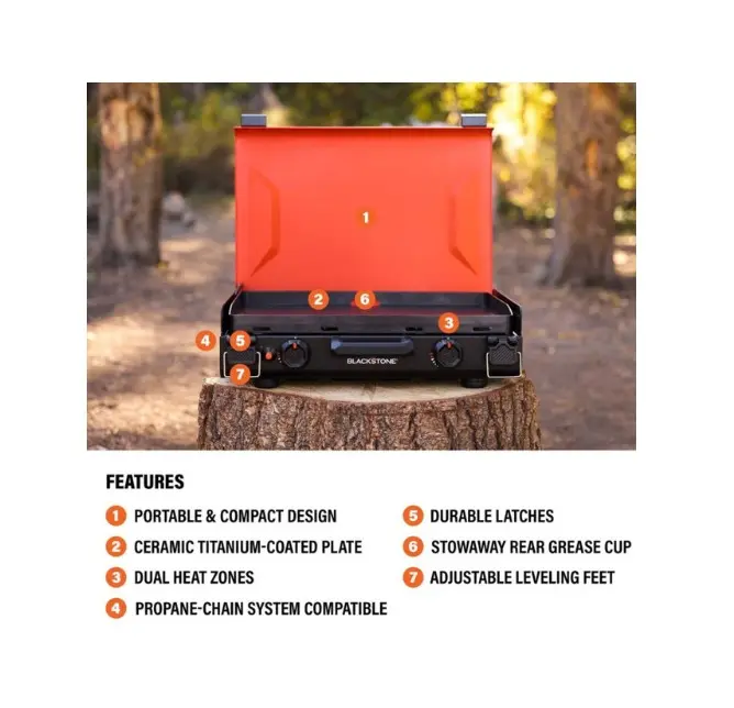 Leveling feet: Adjust the griddle for cooking on uneven surfaces.