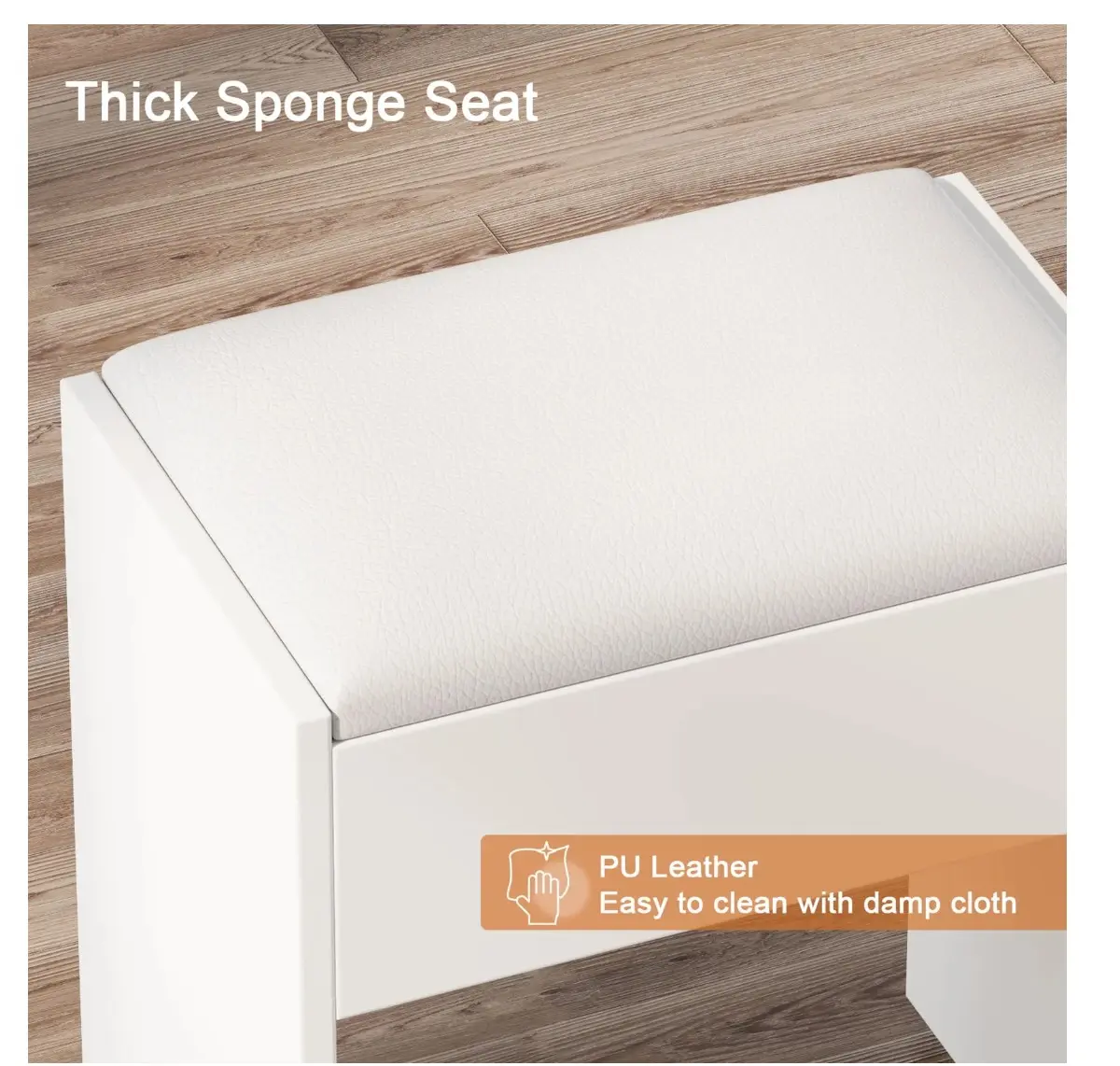 Comfortable Seating: Spacious stool with a soft PU cushion ensures comfort during prolonged makeup sessions