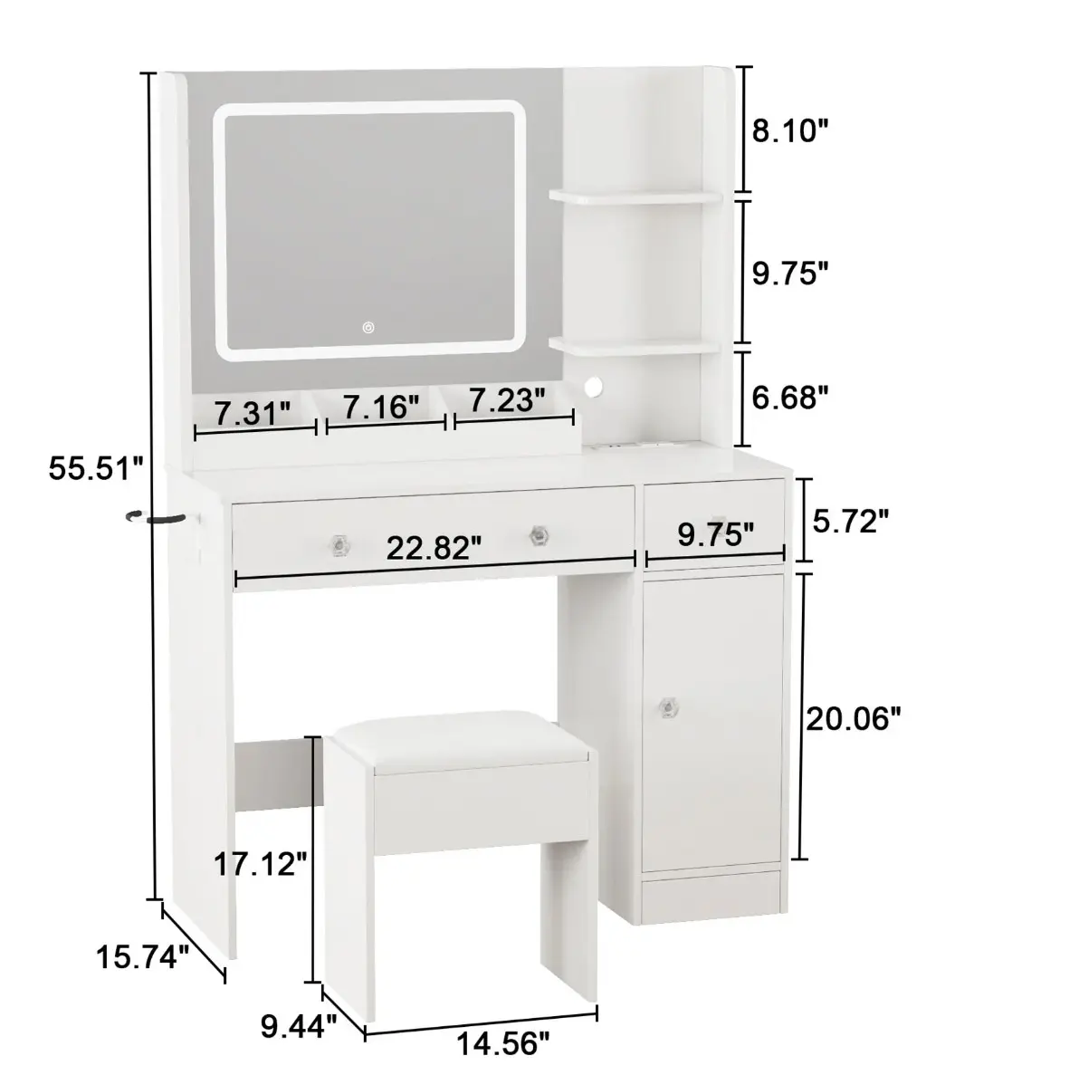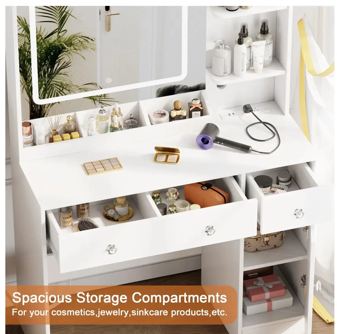 Ample Storage: Wooden drawers, cabinet, and shelves provide ample space to organize and store all your beauty and skincare products
