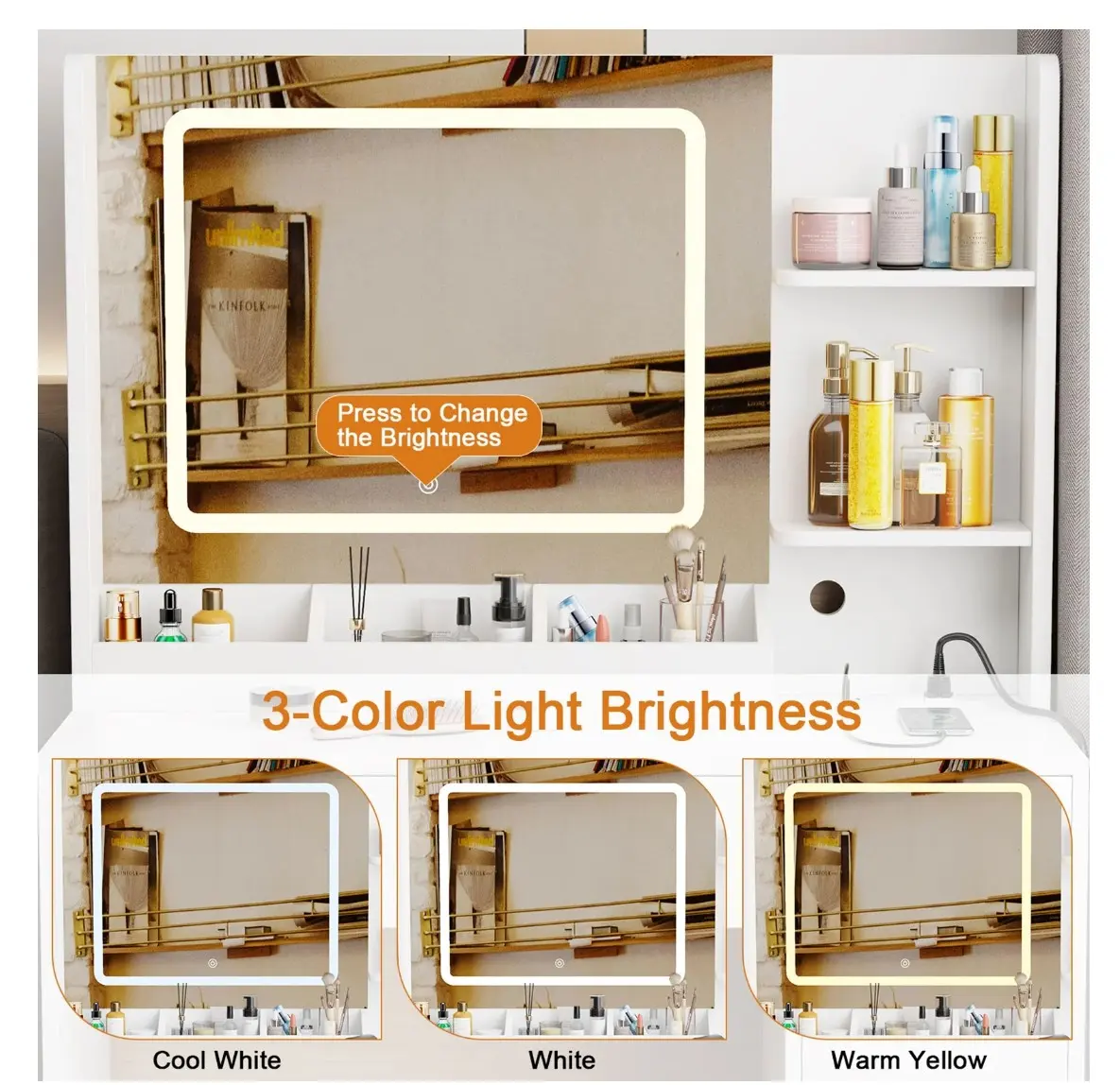Transform your beauty routine with our Makeup Desk with Charging Station by . Tired of juggling power cords and struggling with poor lighting? This all-in-one vanity desk provides the perfect solution. Combining elegance and functionality, it’s designed to make your daily makeup and hairstyling experience seamless and enjoyable.