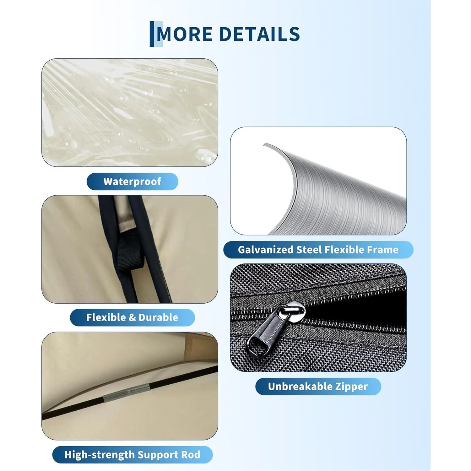 ·Arch-Top Construction: The top combines a sturdy fiberglass frame with weather-resistant fabric. Its arched shape prevents water pooling, while UPF 40+ UV protection keeps you covered under the sun. Great ventilation meets warmth: open windows for airflow in summer, close them to stay cozy in winter.