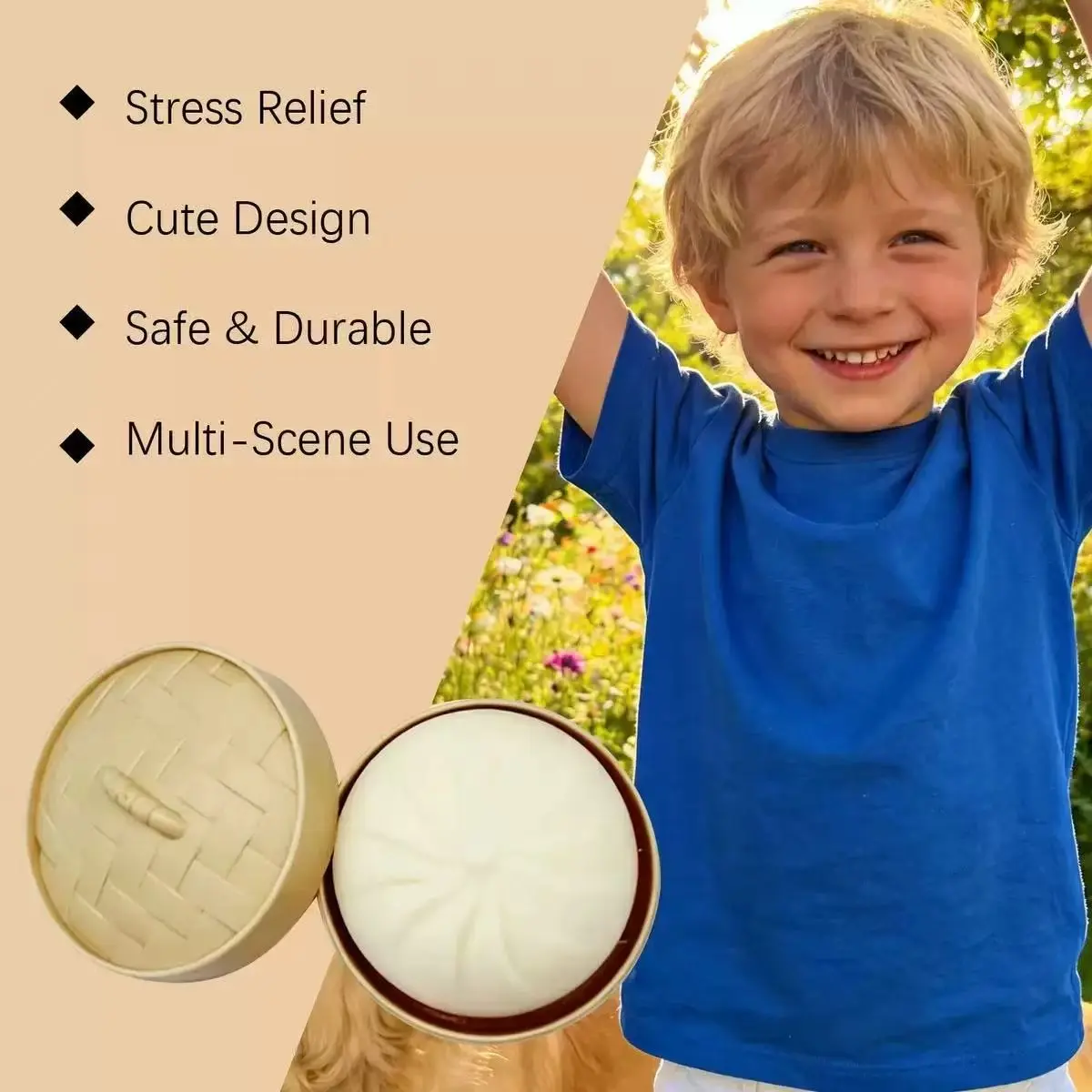 Novel extrusion toy: Unique design “3.15 in x 3.15 in x 1.97 in” extrusion toy featuring a sturdy outer cage with dumpling press balls inside; the bun’s appearance and the steamed packaging look very realistic—even the bun has a smiling face. It truly is a lovely stress reliever, and I’m sure you’ll be satisfied with this innovative, sensory design toy.