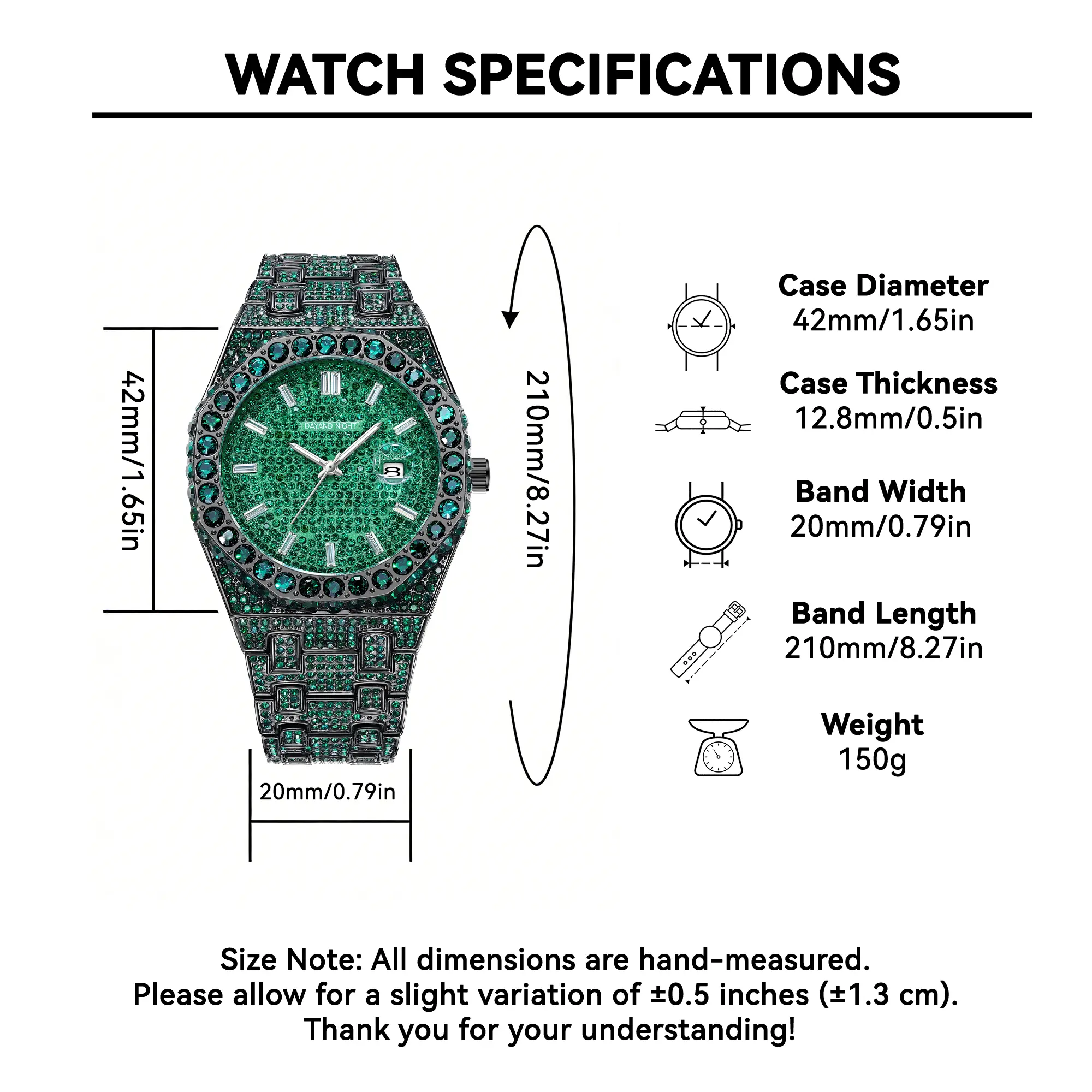 2026 Iced Out Full Pave Round Dial Watch! Sparkly Cubic Zirconia for Men & Women. Perfect Gift! watches for men. Date Night Essential! Stunning Iced Out Round Watch for Him & Her. A Gift They'll Adore.