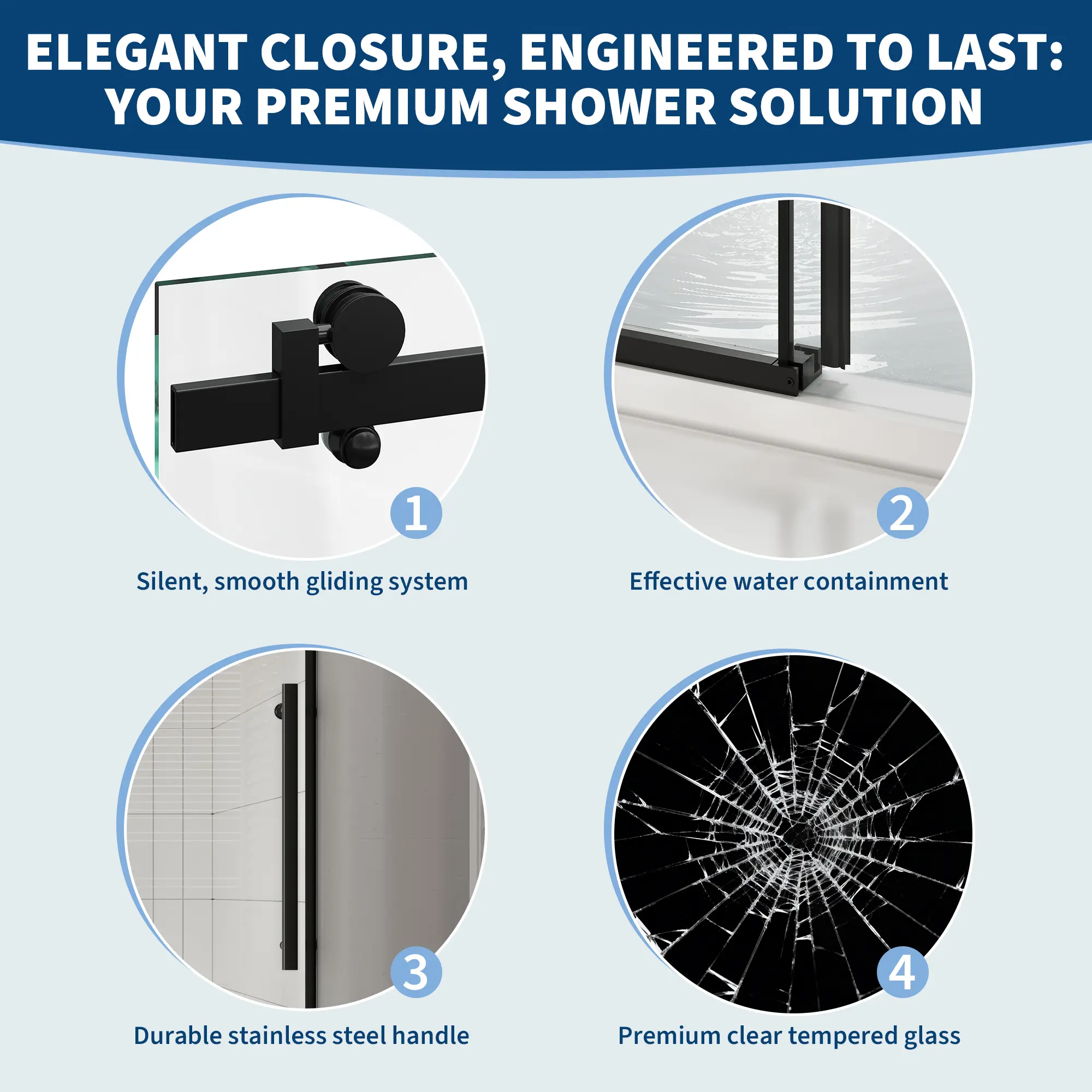 ·【Upgrade Your Shower, Upgrade Your Morning】: Start your day in a space that feels fresh and modern. This glass shower door instantly gives your walk-in shower a sleek, frameless-inspired look—without the frameless price tag. It's the sliding door that makes your bathroom look like you spent way more than you did.