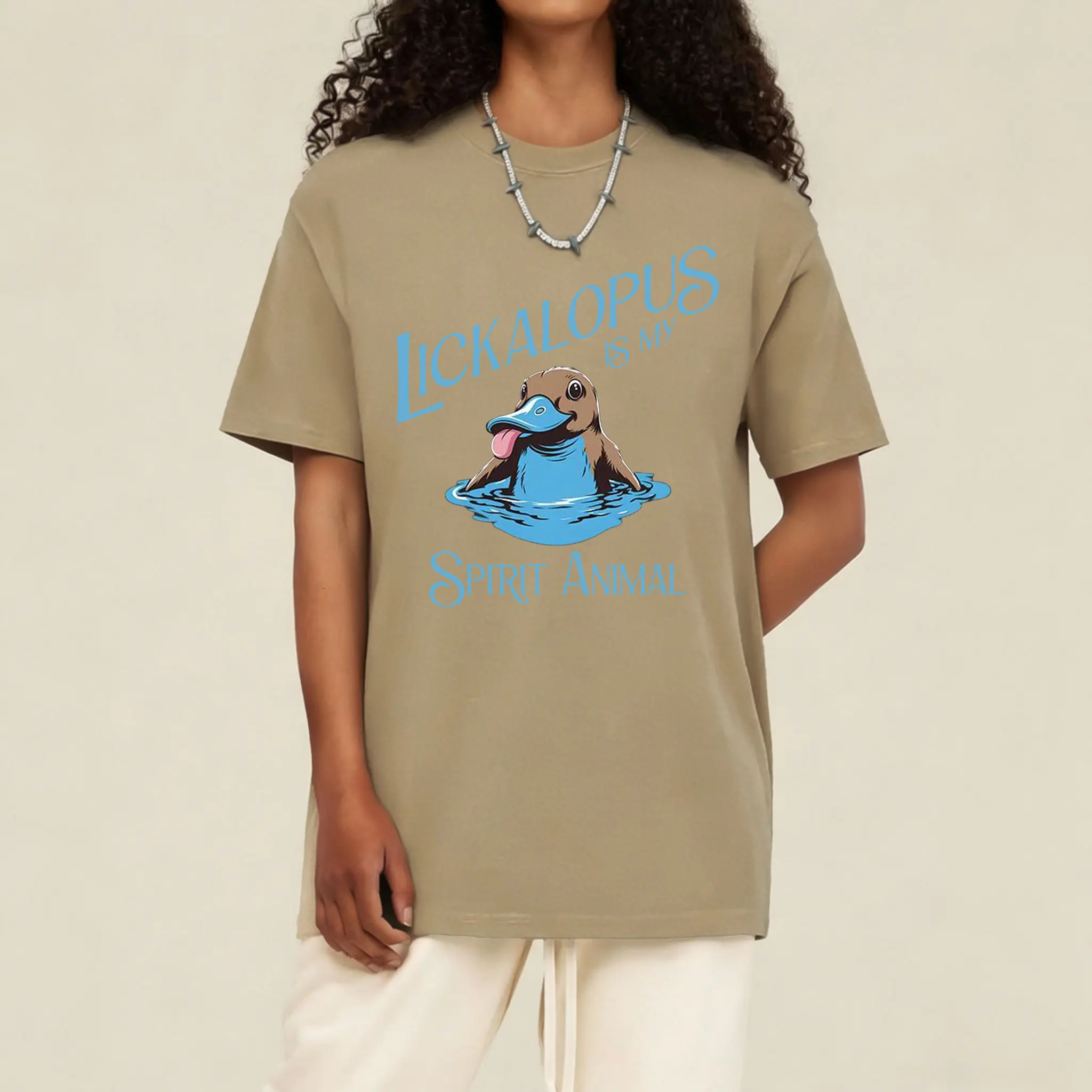 Cartoon Lickalotapus Print Round Neck Tee, Regular Fit Casual Short Sleeve T-shirt, Summer Top for Daily Wear, Tropical, Casual Style Tee