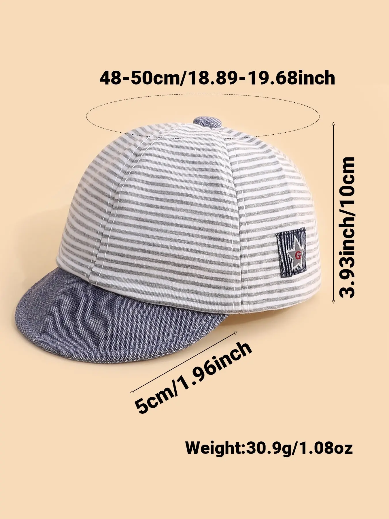 This kids striped soft brim baseball cap is a comfortable travel item specially designed for infants. Classic black/white or gray/white stripes with star patch, simple and versatile. Soft top and brim design won't press baby's delicate head, cute and unrestrained.
