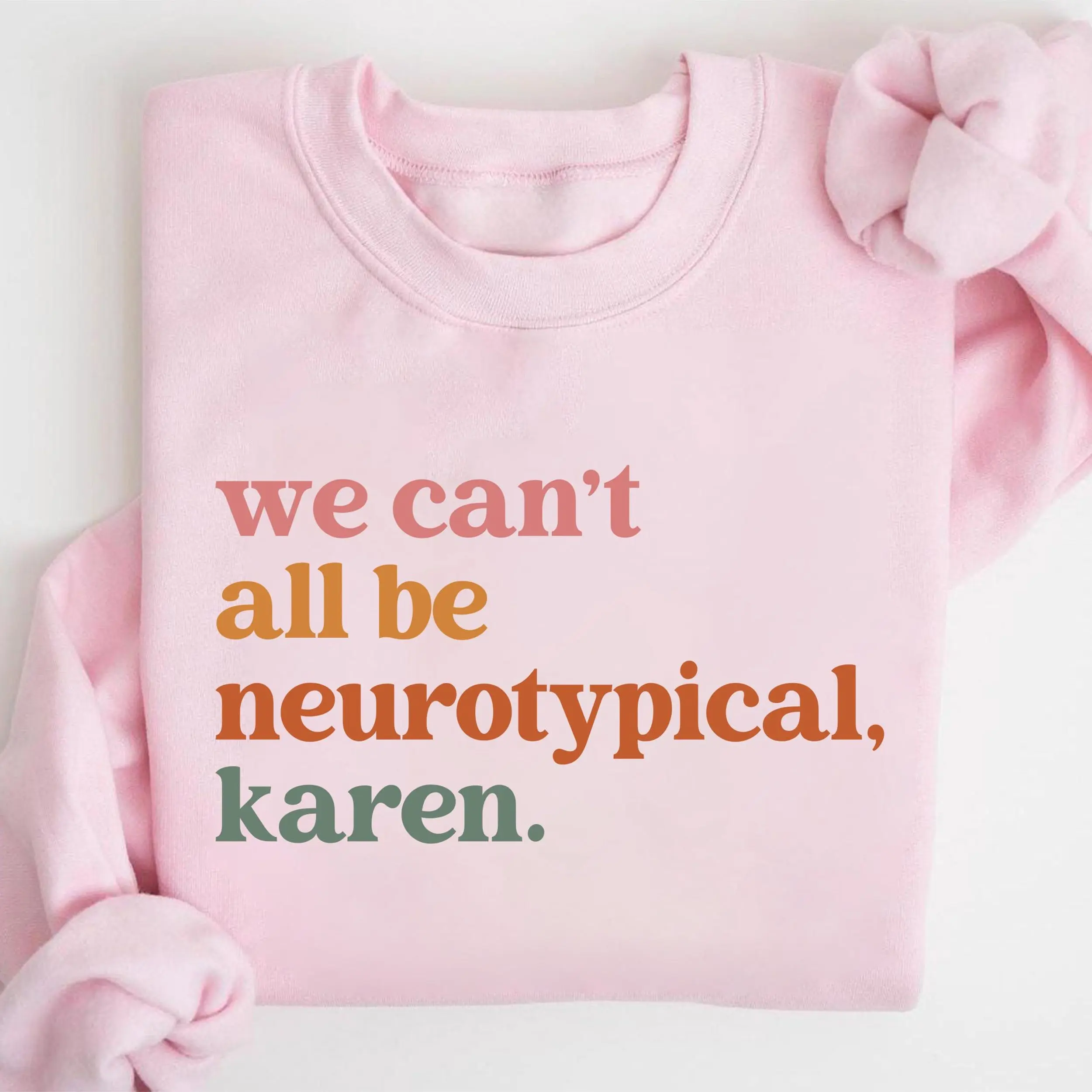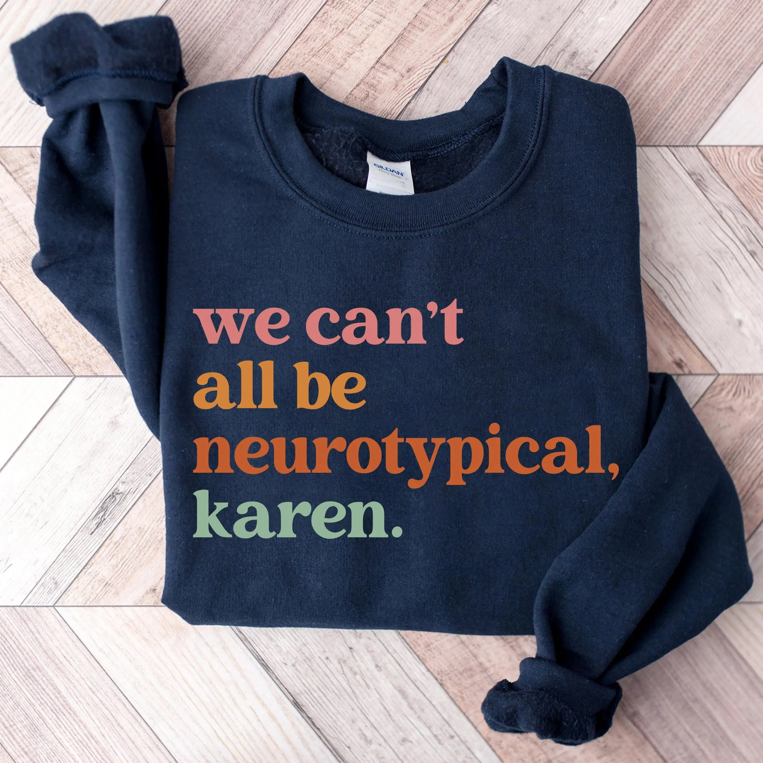 We Can't All Be Neurotypical Karen Autism Awareness Graphic Sweatshirt, Autism Acceptance Month Neurodiversity Funny Pullover Hoodie For Men & Women