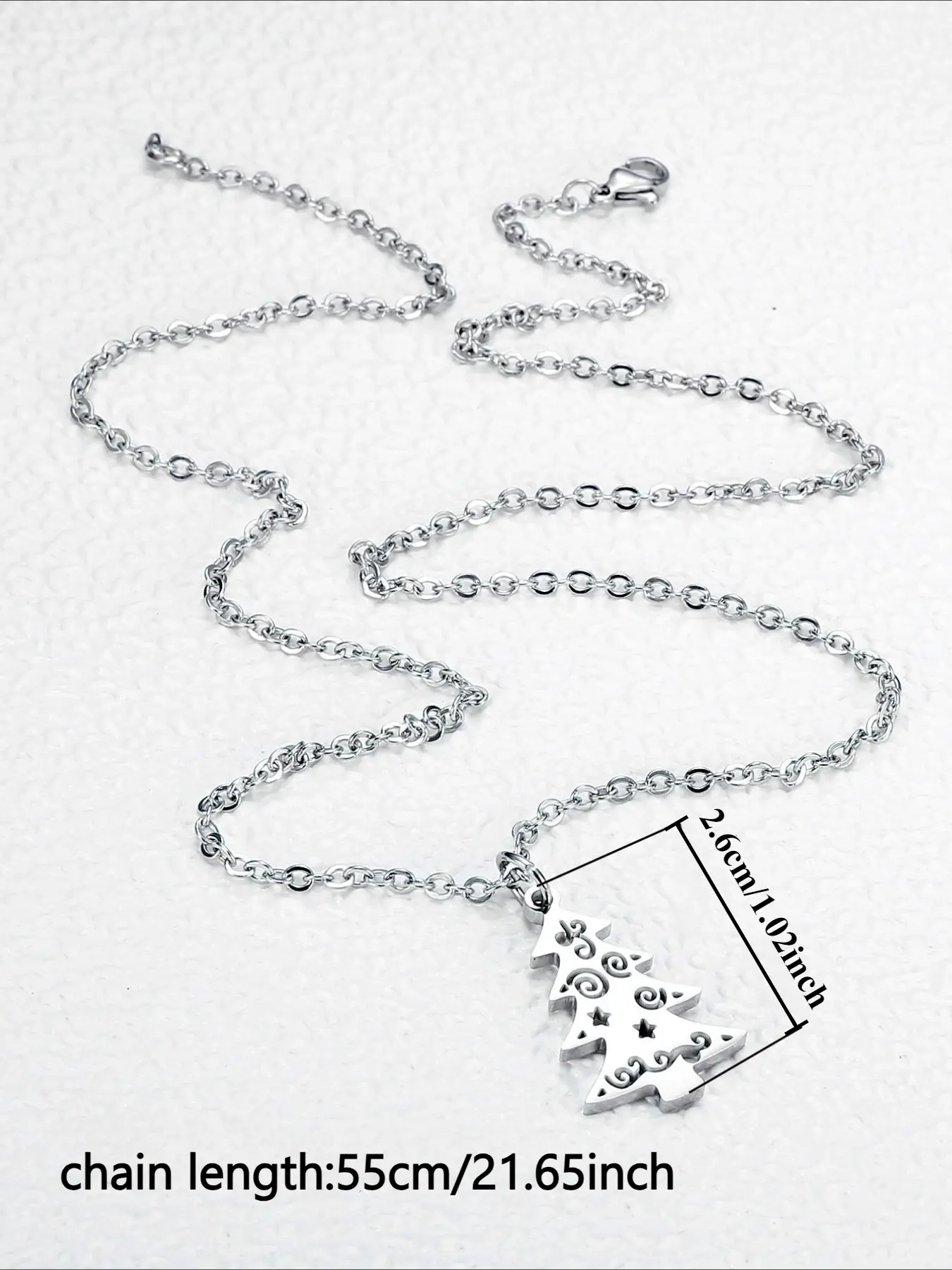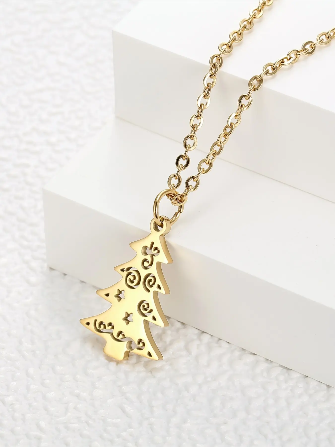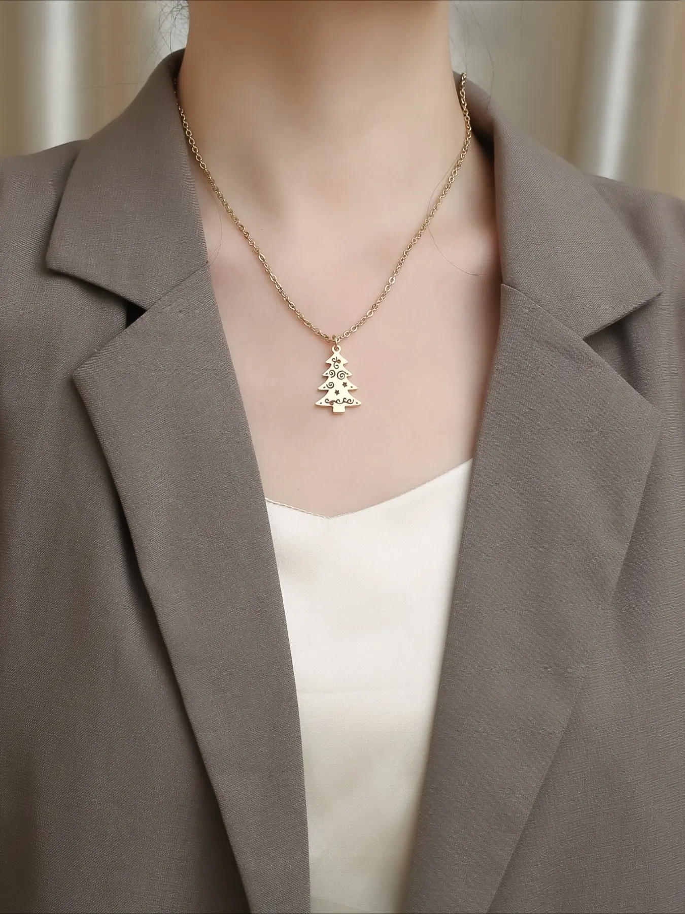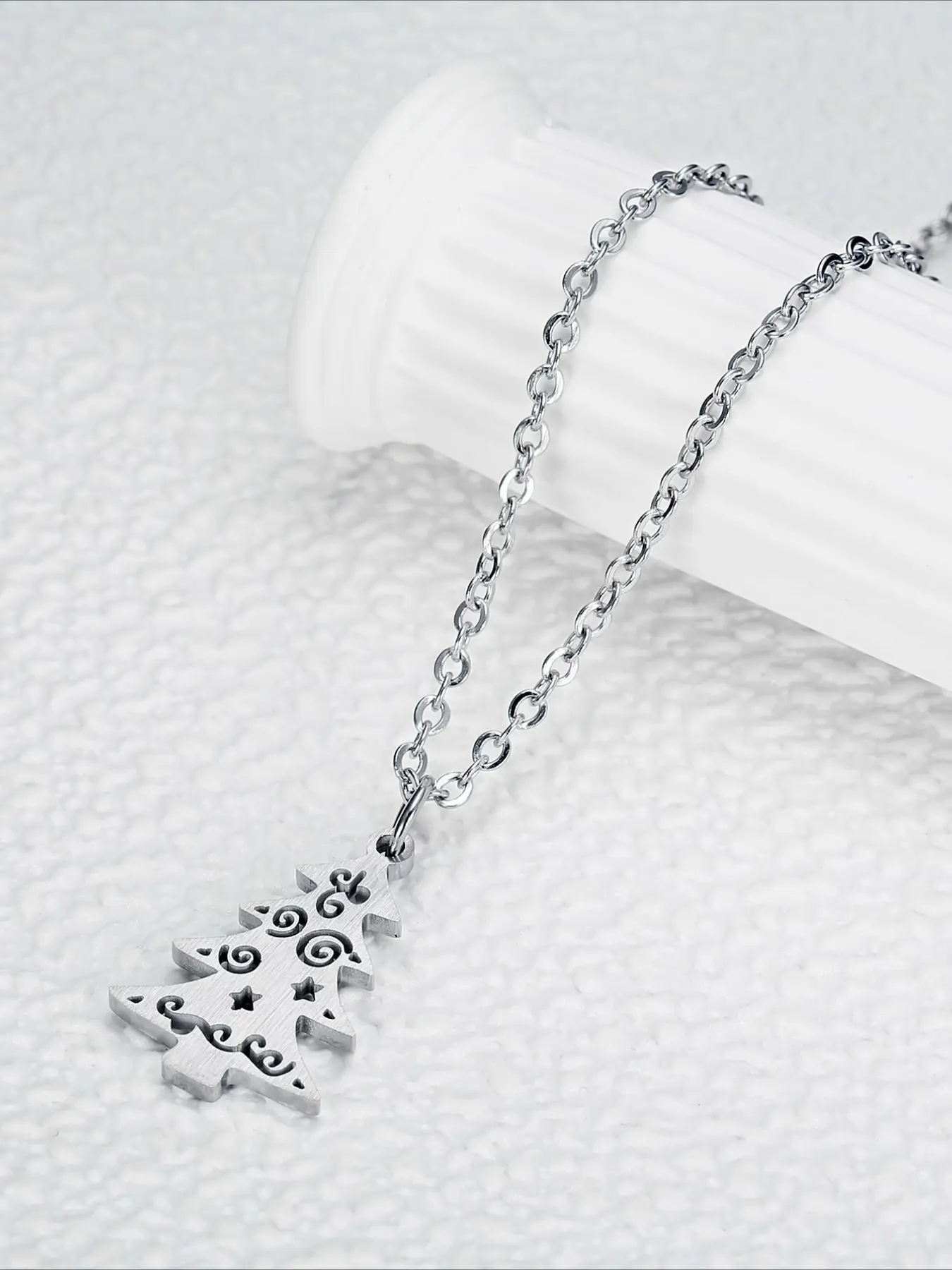 Stainless Steel Christmas Tree Pendant Necklace, Christmas Accessories, Holiday Gifts, Non Fading
