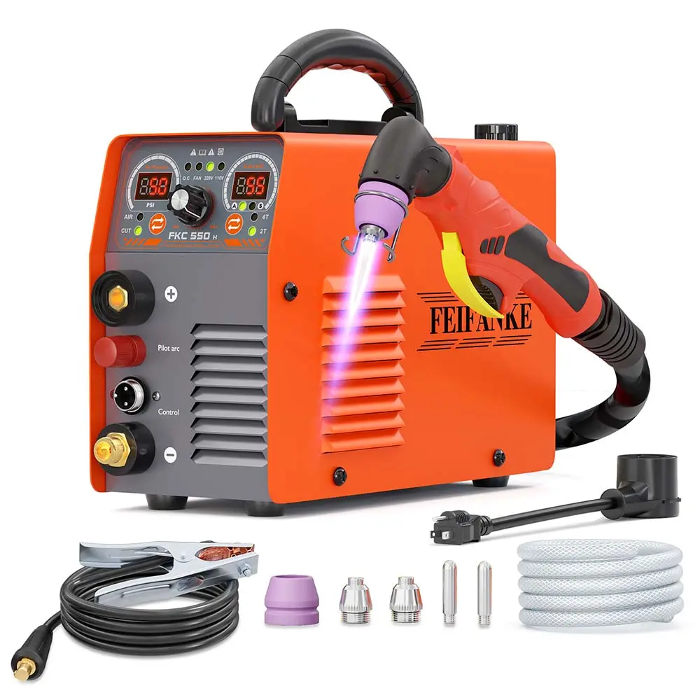 The FEIFANKE FKC-550H 55A plasma cutter uses non-touch pilot arc technology, extending consumable life. It delivers smooth, precise cuts, ideal for thin metals and aluminum. It improves cut quality on corroded or irregular metals, reducing sparks and boosting safety.