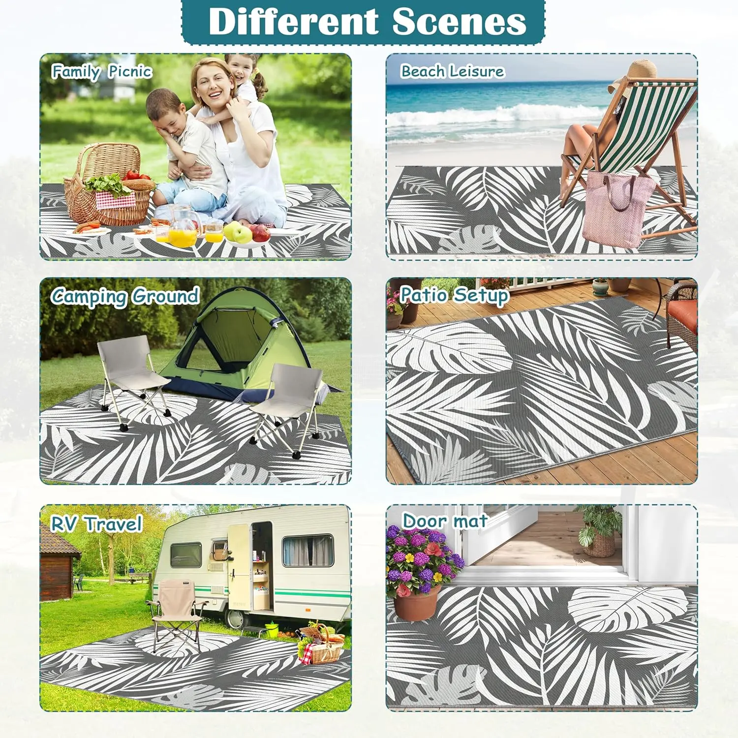 ·Wide Range of Use: A multifunctional outdoor rug is an excellent choice for enjoying a great product experience. Suitable for any outdoor or indoor decoration, such as camping, patio, deck, balcony, porch, picnic, RV, Beach, Trailer, etc., adding elegance to them.
