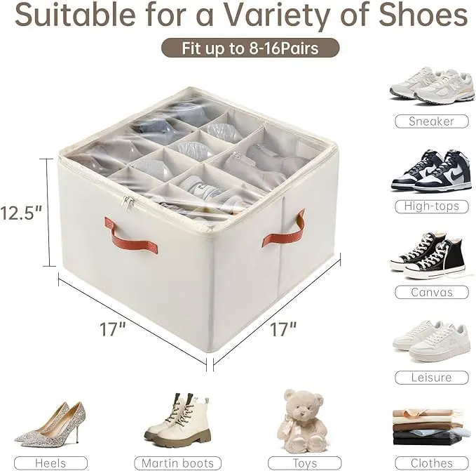 ·SPACIOUS DIMENSIONS: Measures 17 inches long by 17 inches wide by 12.5 inches high, providing ample storage capacity for multiple pairs of shoes