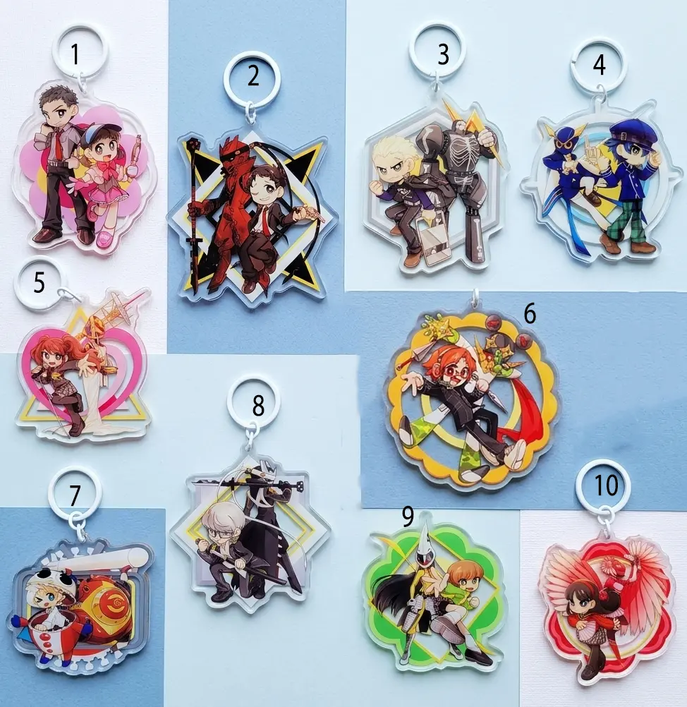 5. Persona 4 acrylic keychains- Investigation Team Party Members, Hero/Yu/Souji, Yosuke, Chie, Yukiko, Kanji, Naoto, Teddie, Rise, Adachi, Nanako, Dojima