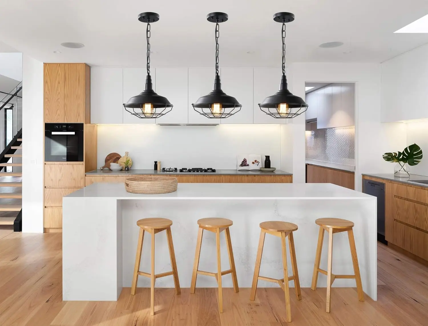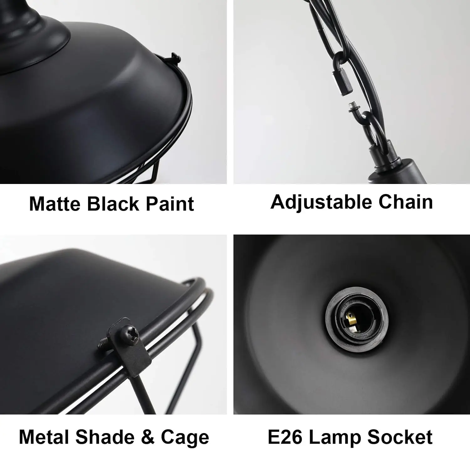 Black Farmhouse Pendant Light, 2 Pack Industrial Vintage Metal Wire Cage Hanging Light with Adjustable Chain for Kitchen Barn Hallway Porch Dining Room