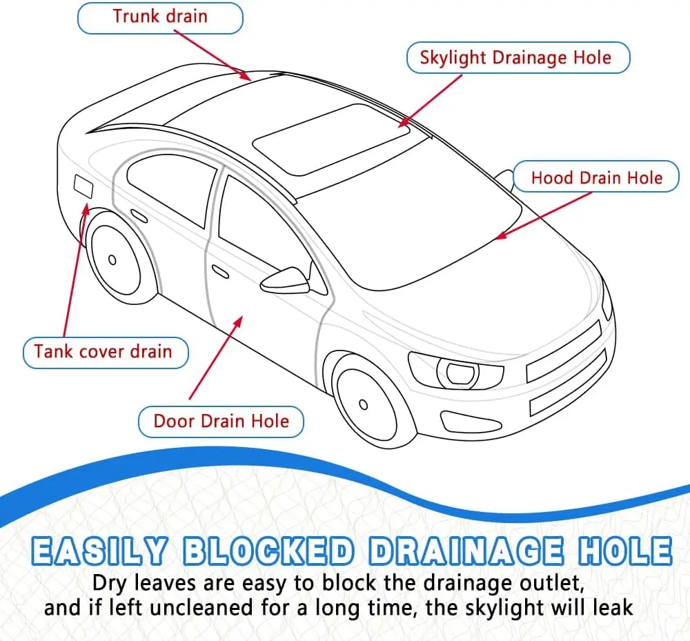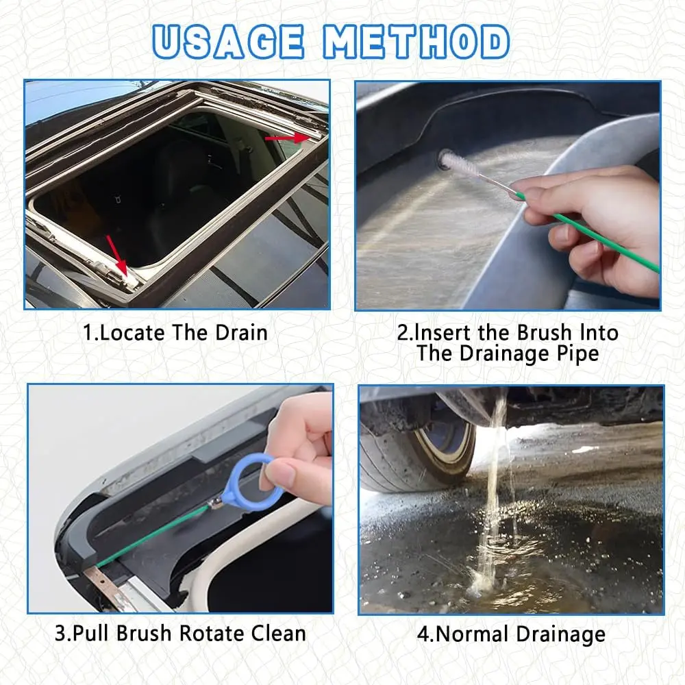 Simply attach the brush to the flexible pipe and navigate through your car's drain and windshield. The tool's design ensures ease of use and effectiveness. Ideal for regular maintenance, keeping your car's interior clean and hygienic.