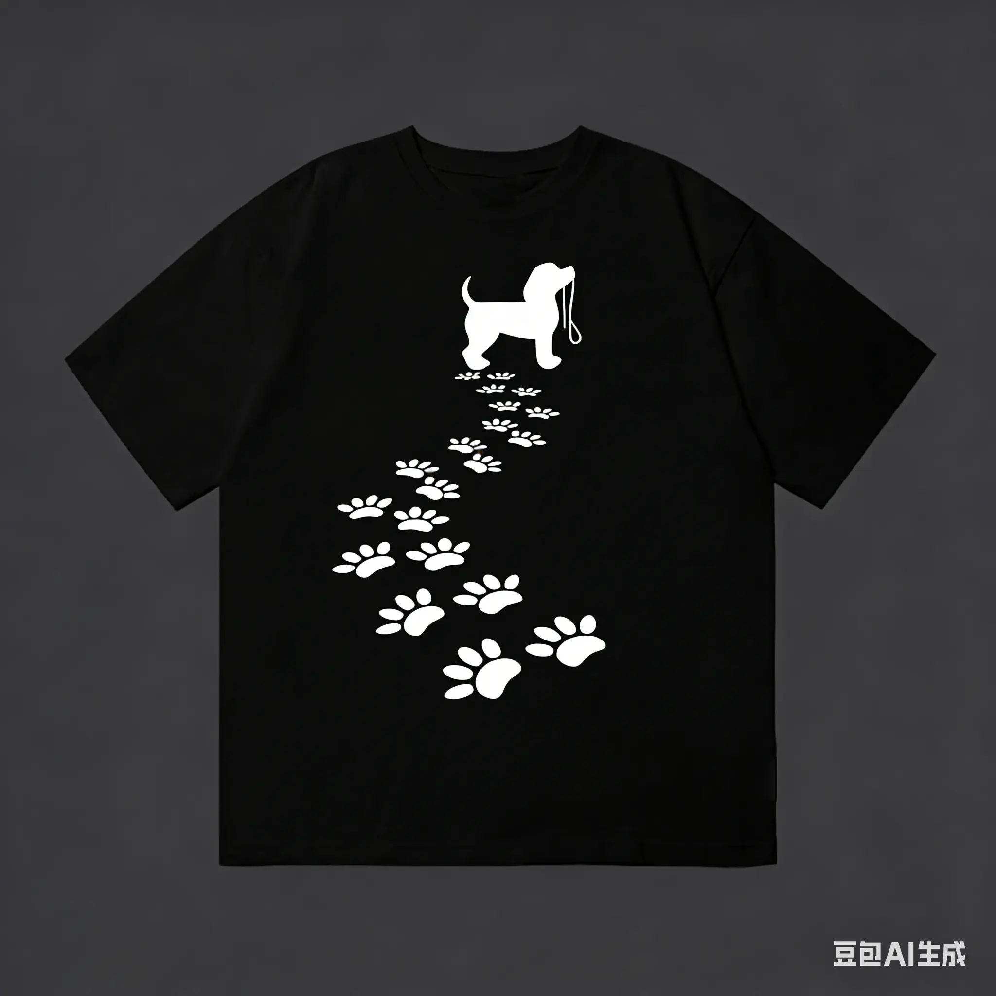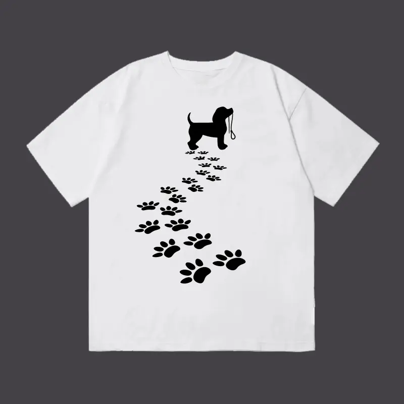 Women's Casual Short Sleeve T-Shirt with Dog Silhouette & Paw Print Graphic - Soft Pink Round Neck Summer Top, women oversized tshirt