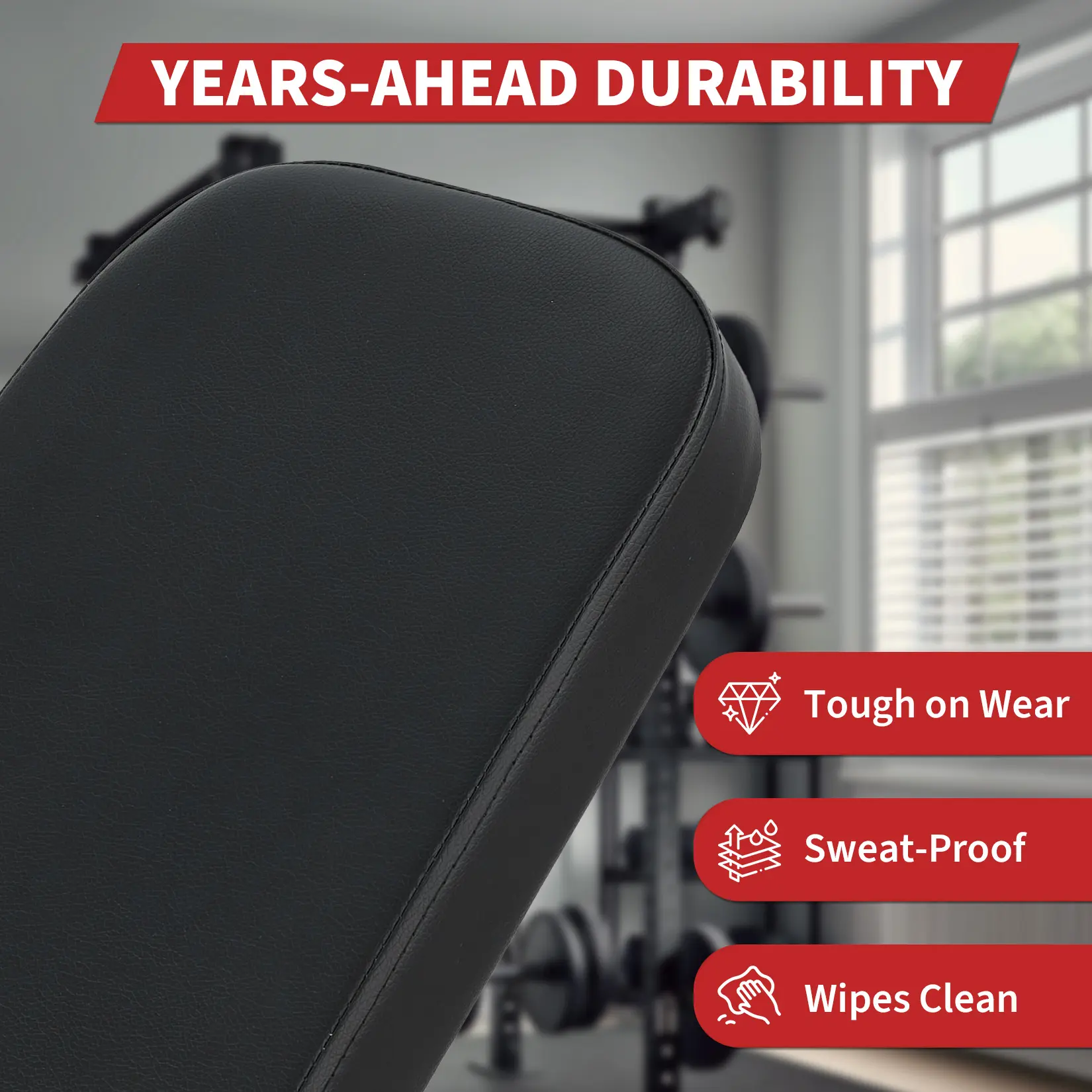 ·DURABLE MATERIAL FOR LONG-TERM USE- Made with premium steel and wear-resistant leather covering, this workout bench is built to withstand daily use and intense training sessions, ensuring long-lasting performance.