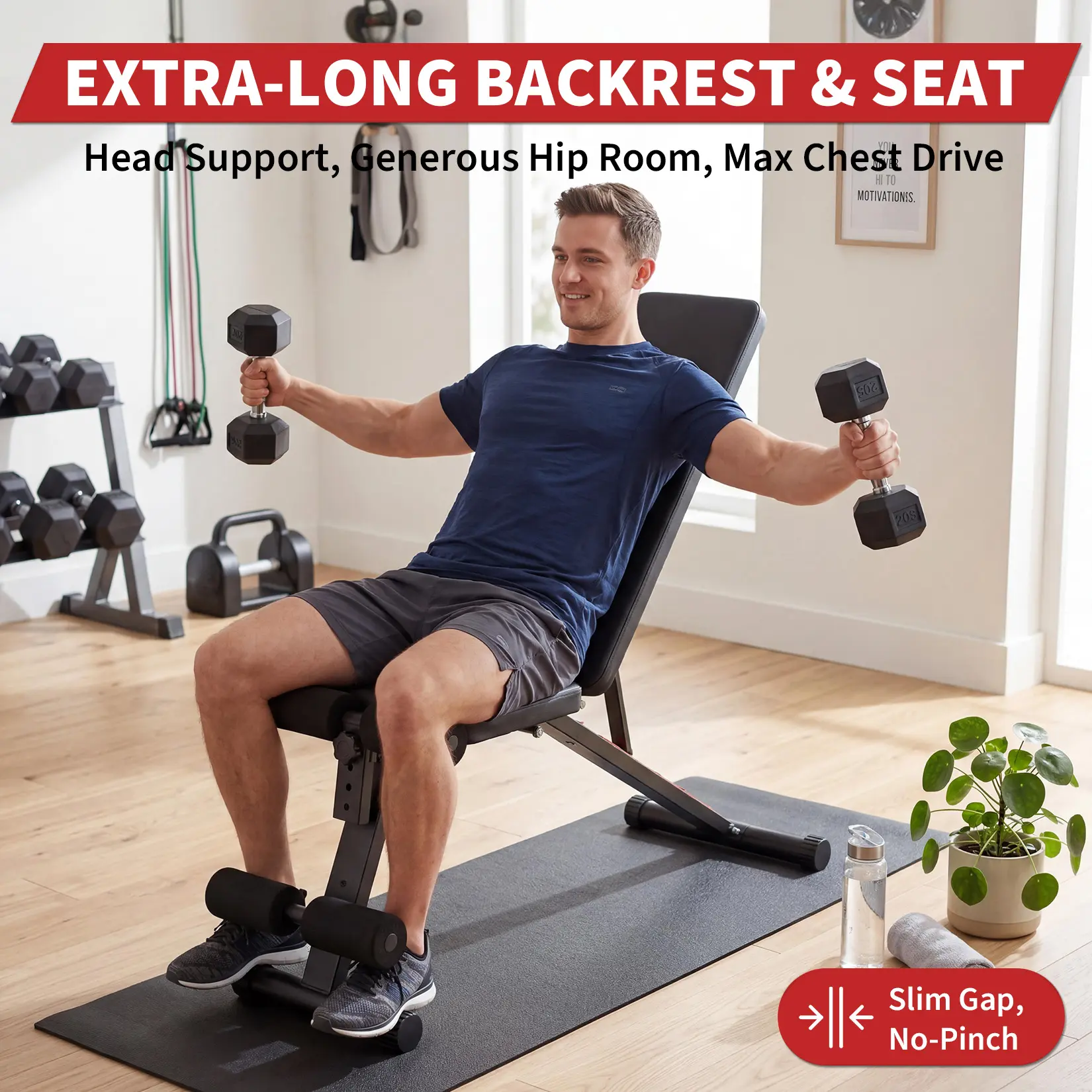 ·COMFORTABLE & ERGONOMIC SUPPORT - Equipped with high-density foam padding and widened seat/backrest, providing firm yet comfortable support. Helps maintain proper posture and reduces strain during extended workouts.