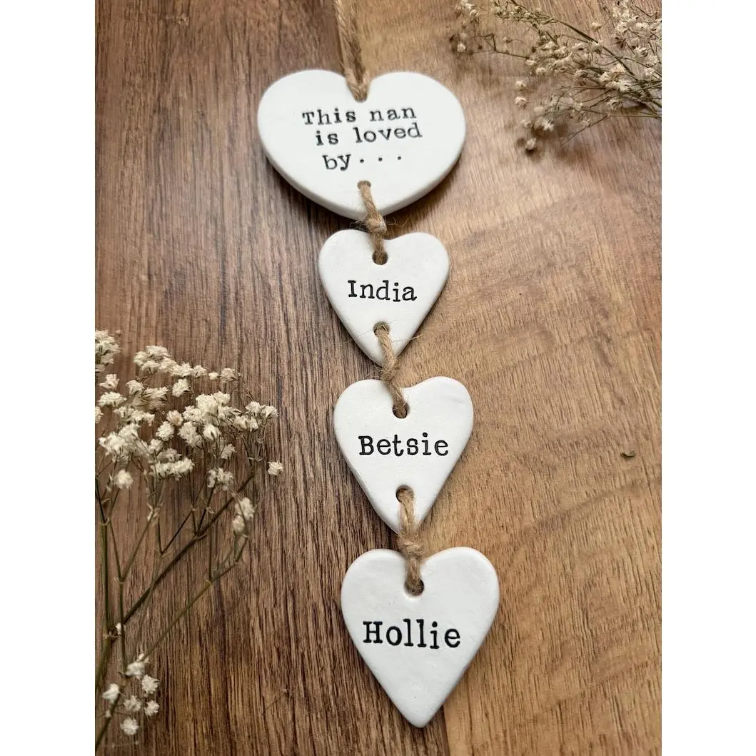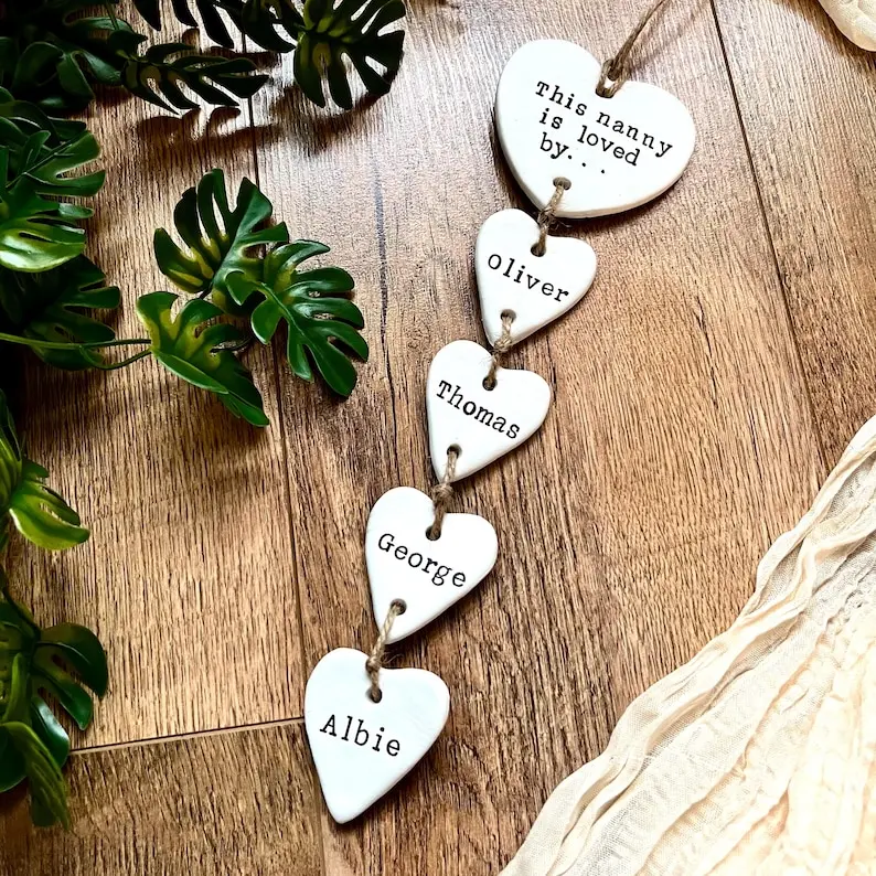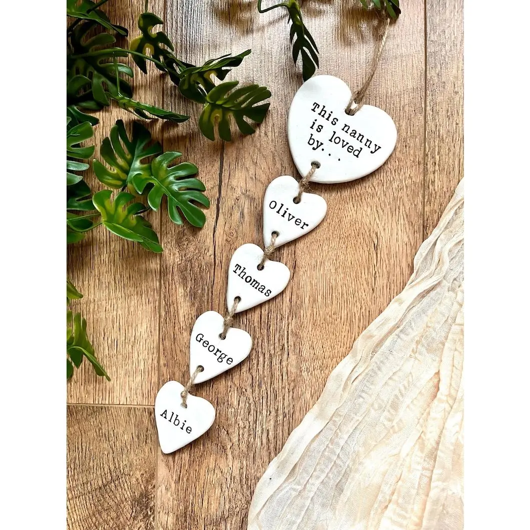 Custom Clay Heart Keepsake - Personalised Hanging Decoration for Nanny - Unique Mothers Day or Birthday Gift for Grandmother