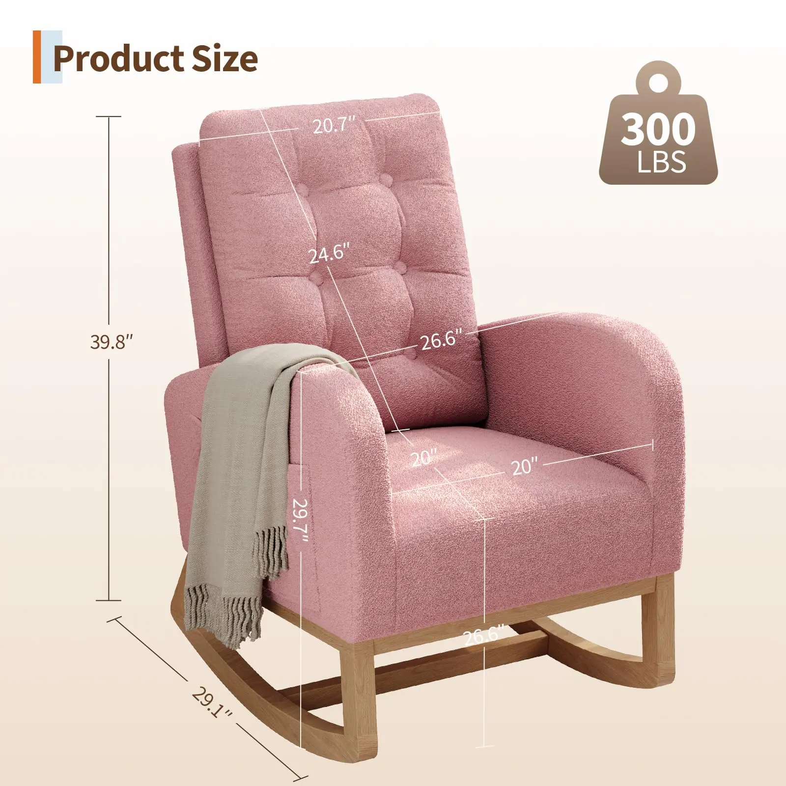 ·5.Easy Assembly & Support – Measuring 24.8" W x 29.5" D x 40.9" H, this rocker comes with clear instructions and all necessary tools for straightforward setup. Should you need any assistance—whether with assembly, parts, or product quality—our customer support team is just a message away