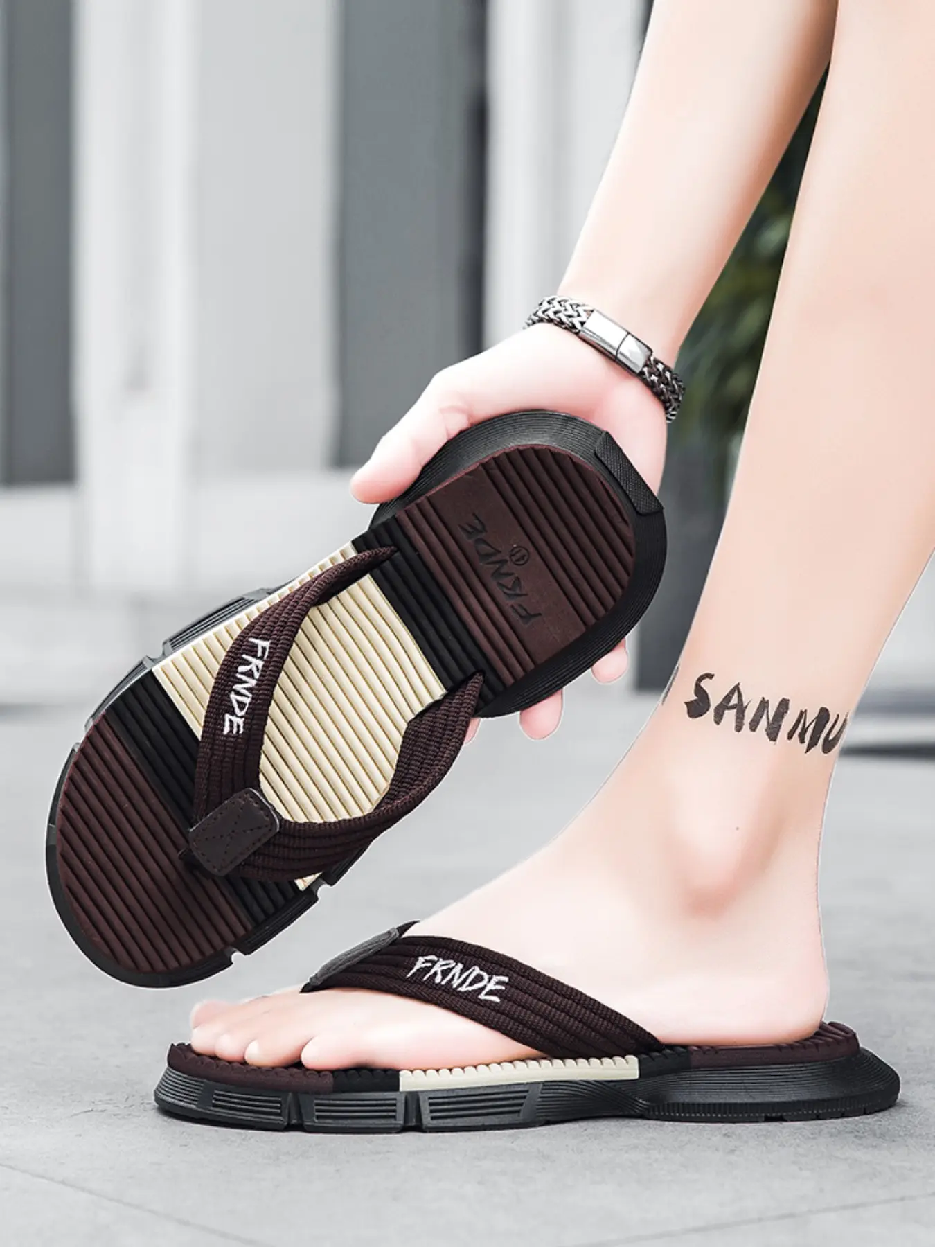 Men's Luxury Simple Commuter Sandals, Anti-Slip Durable, Quick-Dry Beach Pool, Casual Outdoor Slip-On Flip Flops, Colorblock Design