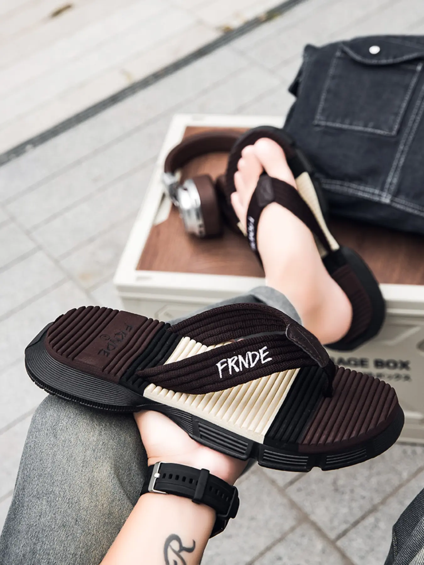 Men's Outdoor Hiking Durable Sandals, Thick Sole Height Boost, Anti-Slip Wear-Resistant, Trendy Casual Beach Slippers, Colorblock Design