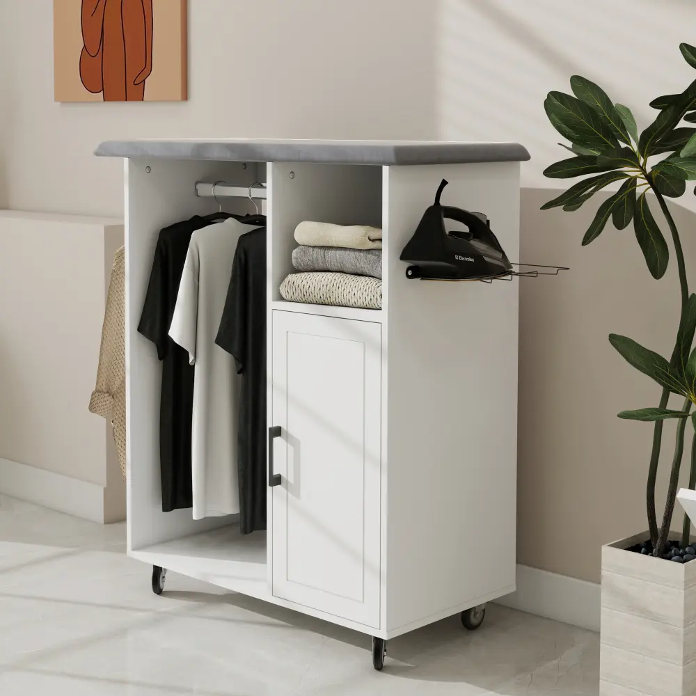 Convenient Rolling Ironing Board: Enjoy hassle-free ironing with the portable cart that rolls easily to where it's needed most.