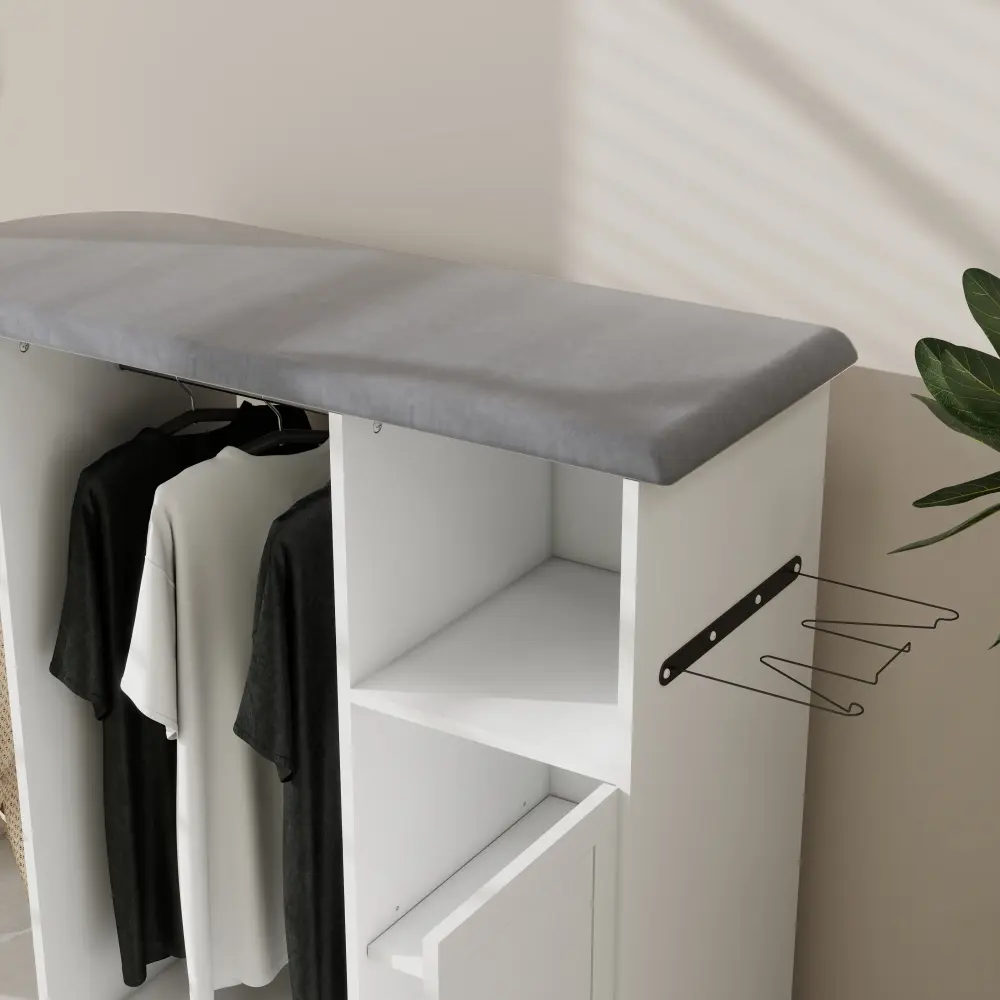 Compact & Modern design:The white E1 MDF Ironing Cabinet is fashionable in design and suitable for various decoration styles. Ideal for use in laundry rooms, kitchens, or anywhere needing an elegant storage solution.