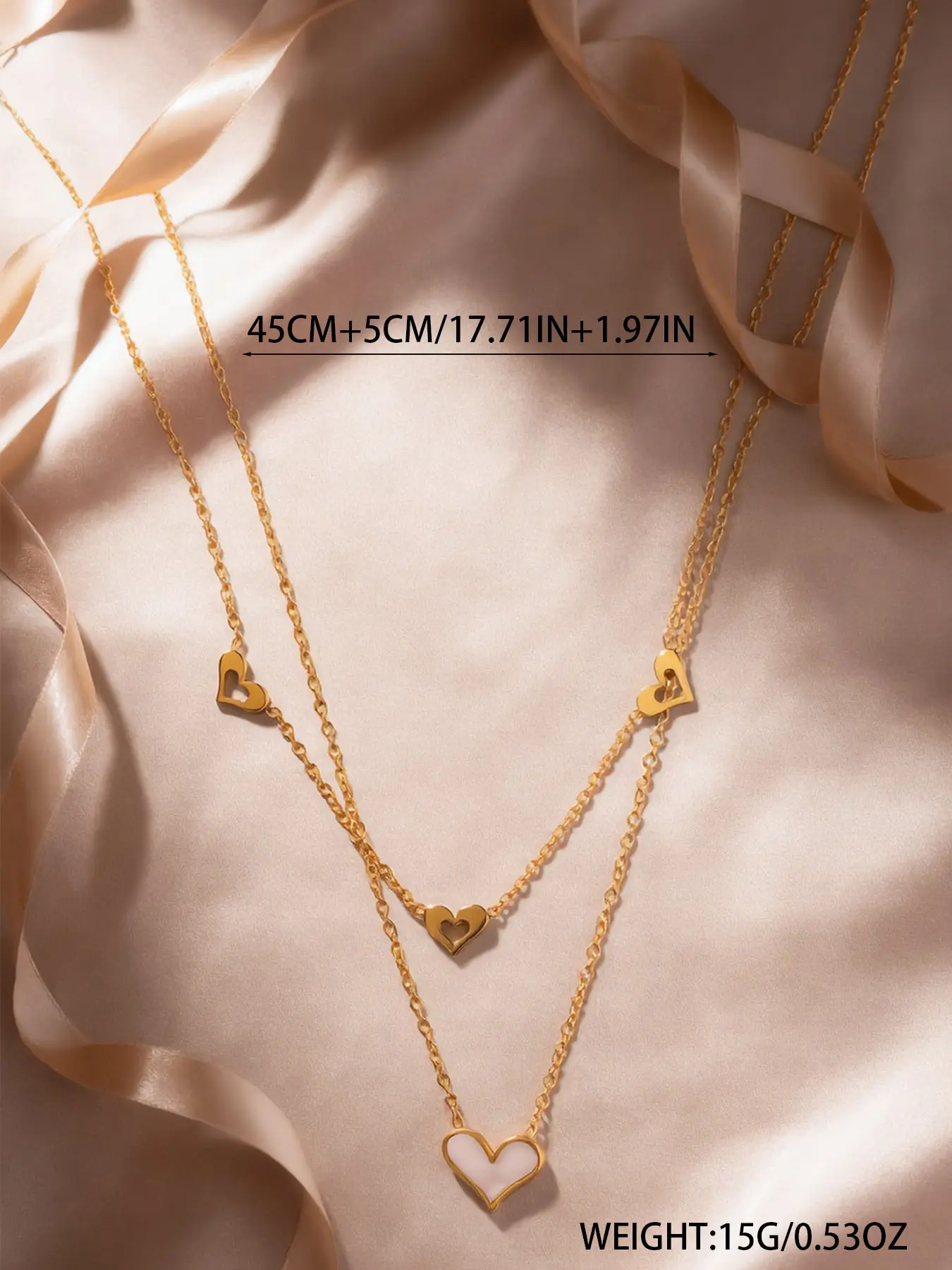 Titanium Steel Heart Necklace for Women, Elegant Layered Design, Sparkling Rhinestones, Perfect for Parties and Daily Wear